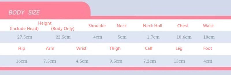 ※ 各サイズはメーカー公式データを記載しています。実際のドール・アイテムには個体差により多少の誤差があります。