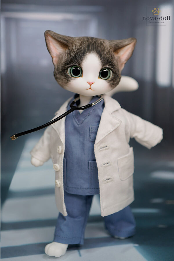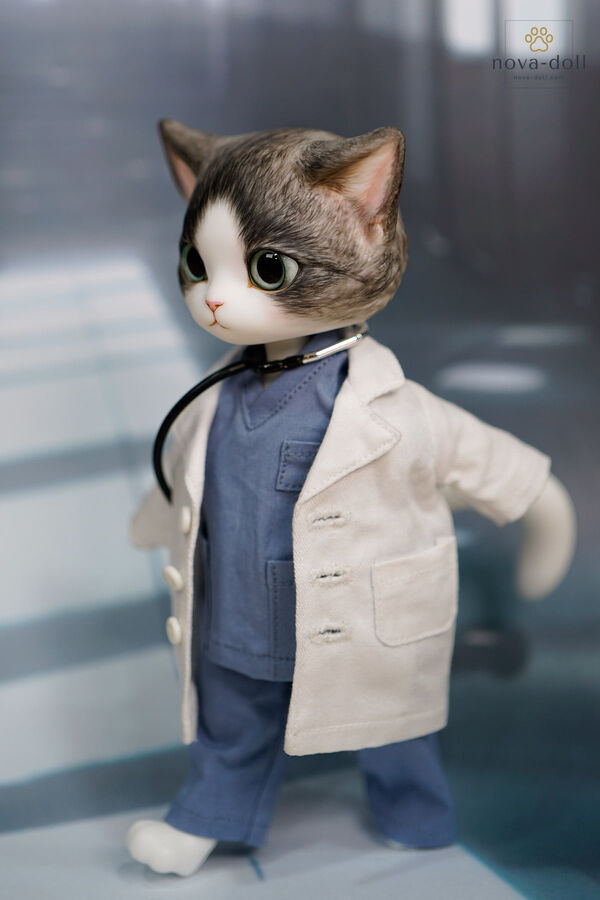 また今回は、Fairytales製の高品質なドールドレス技術を活かし、特製ドクターウェアをご用意。