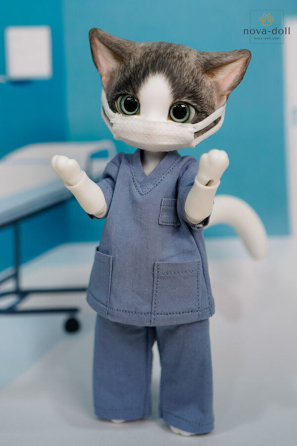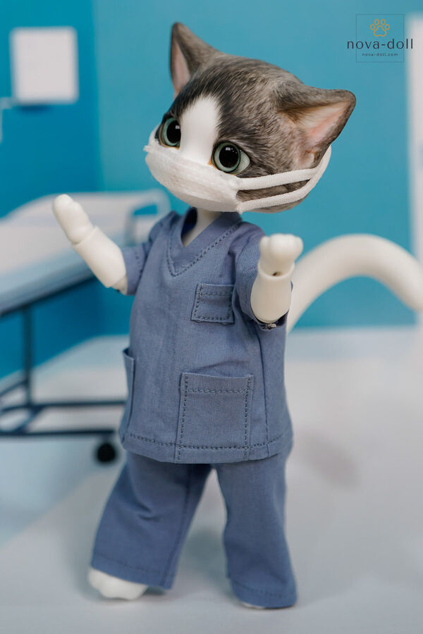 小さなボディサイズながら、細部まで丁寧に仕立てられたFairyTalesによる特別仕様のメディカルウェア。ポケットやステッチに至るまで忠実に再現し、質感とディテールの両面で高い完成度を誇ります。