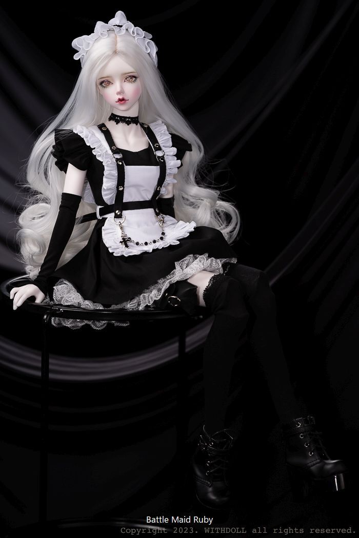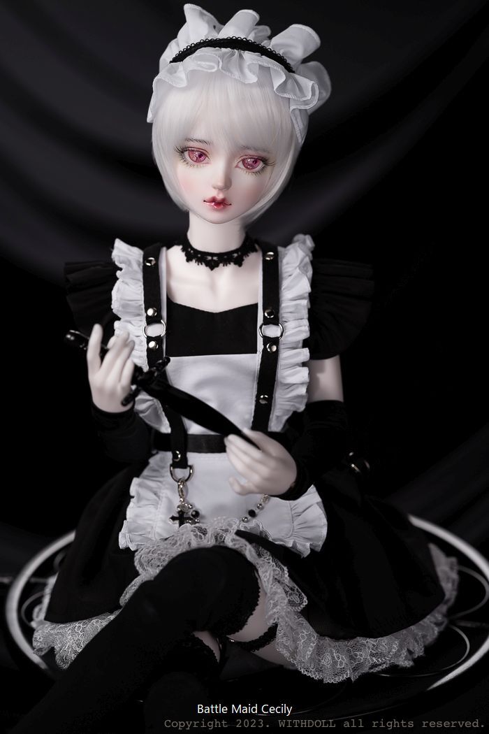 Battle Maid: ヘアバンド、チョーカー、エプロン、ワンピース、ハーネス、クロスペンダントチェーン、ポケットベルト、ドロワーズ、レッグチョーカー、ソックス