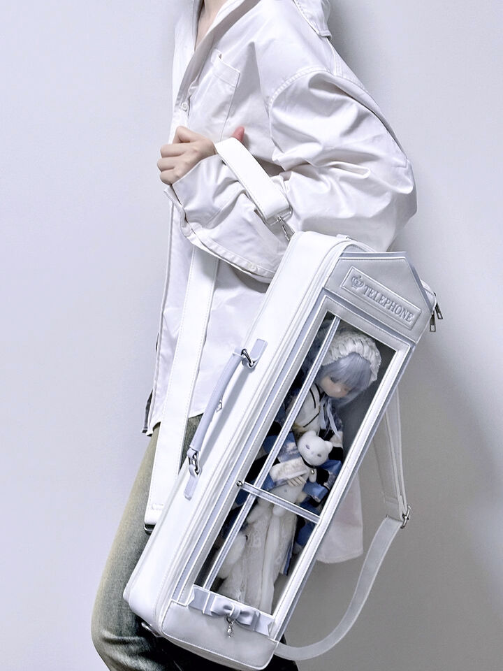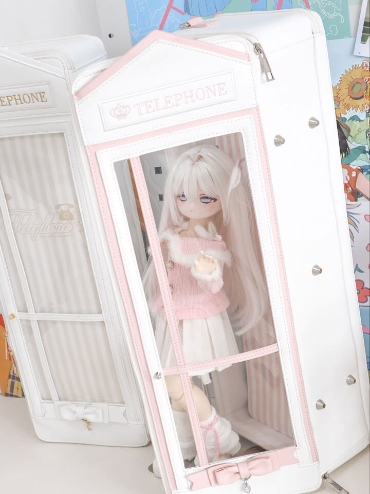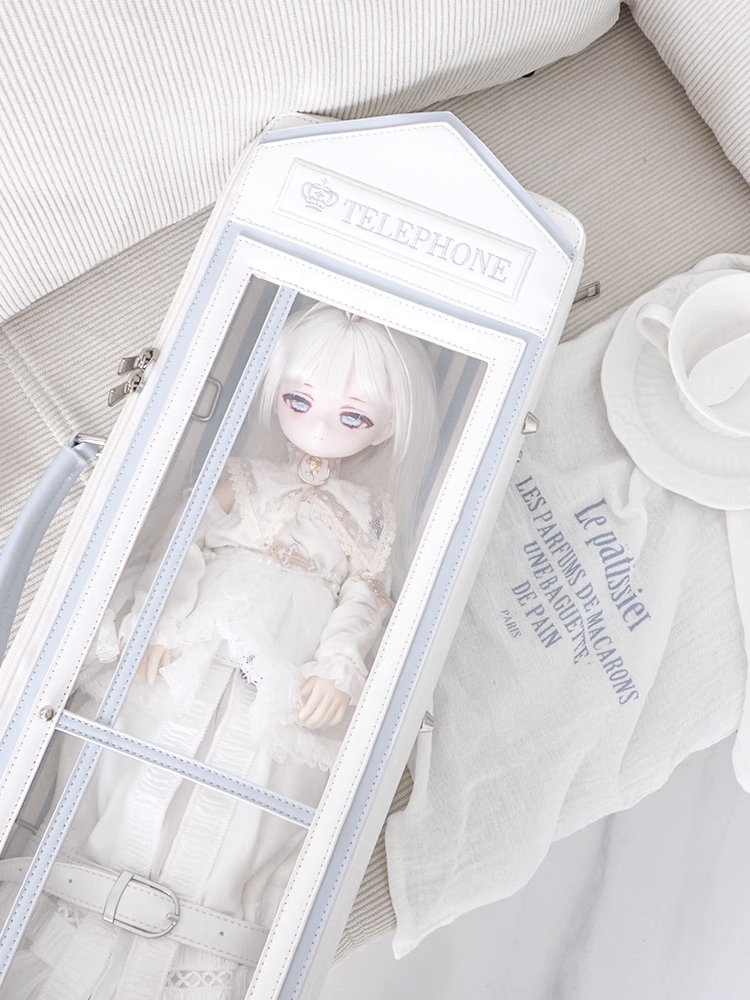 ドールバッグ:テレフォンボックス/ブルーホワイト(40cm対応)