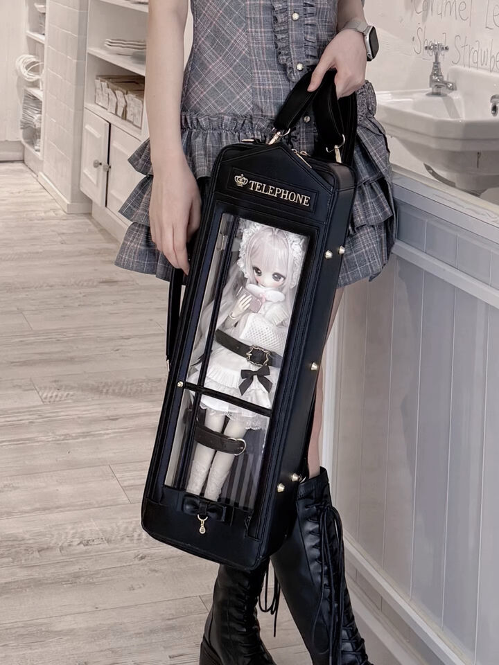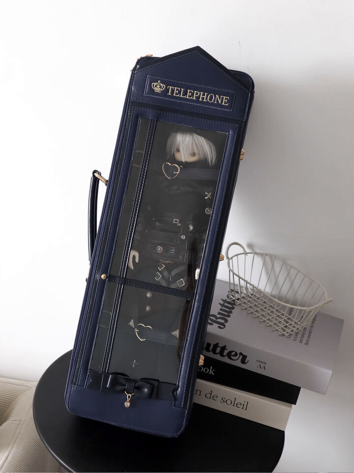 • ドールバッグ:テレフォンボックス/ブルーホワイト(40cm対応)