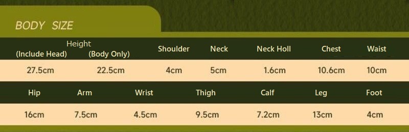 ※ 各サイズはメーカー公式データを記載しています。実際のドール・アイテムには個体差により多少の誤差があります。