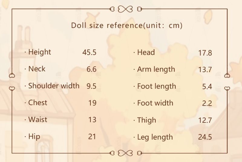 ※ 各サイズはメーカー公式データを記載しています。実際のドール・アイテムには個体差により多少の誤差があります。