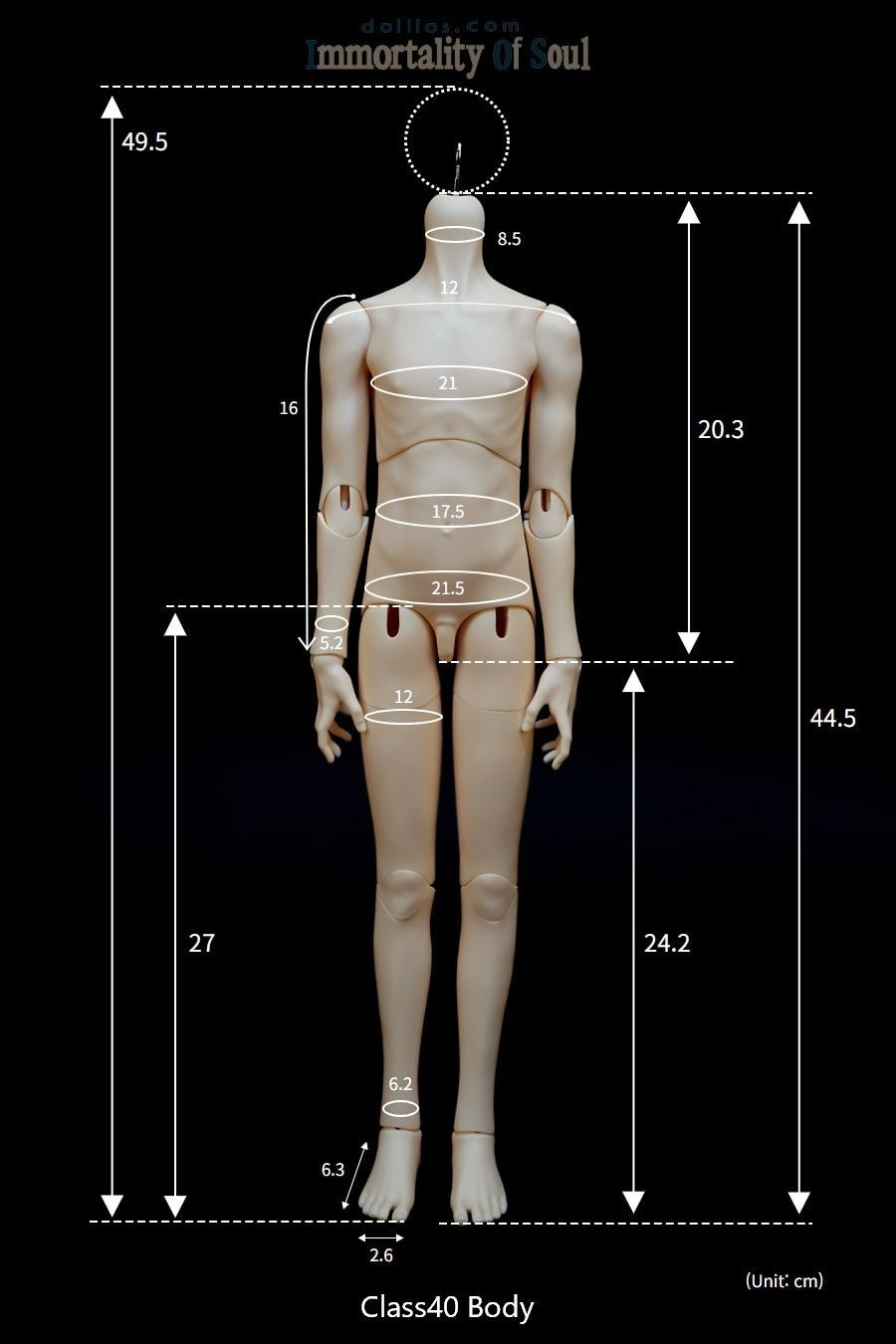 ドール本体、またはモデルドール、または商品のサイズ情報が表示されます。