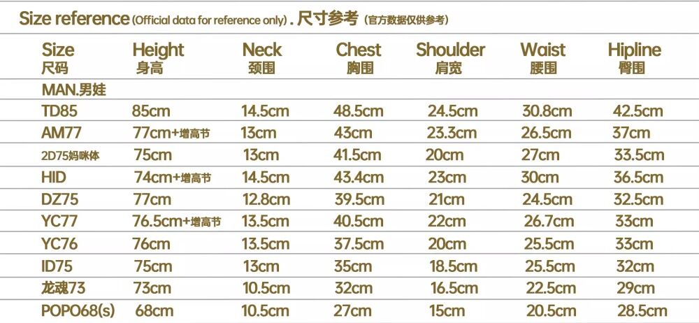 ※ 各サイズはメーカー公式データを記載しています。実際のドール・アイテムには個体差により多少の誤差があります。