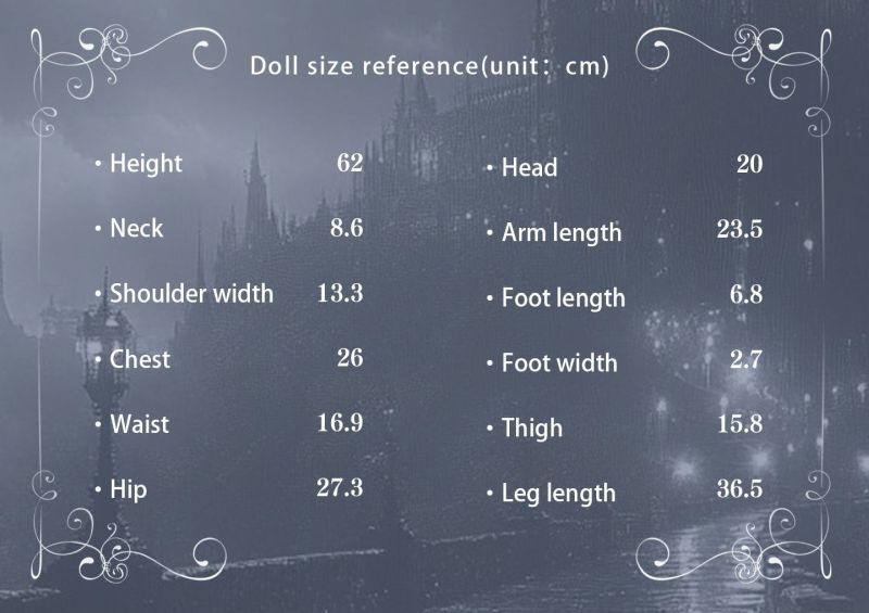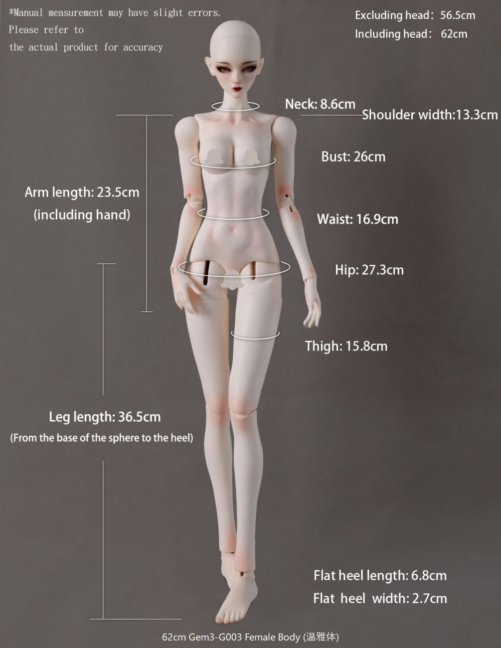 | 1/3 Girl 003(温雅体): M | 62 | 19.5 | 8.6 | 13.3 | 26 | 16.9 | 27.3 | 23.5 | --- | 36.5 | 15.8 | 6.8 | 2.7 | 7~8 | 14 |