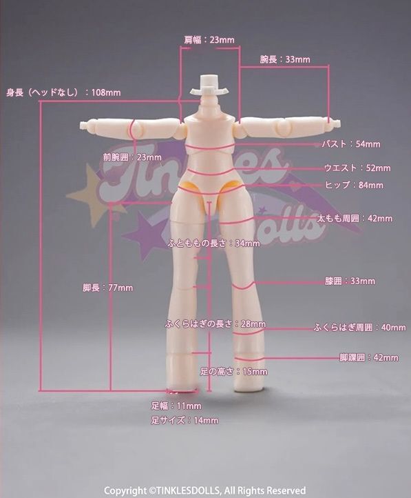 ※ 各サイズはメーカー公式データを記載しています。実際のドール・アイテムには個体差により多少の誤差があります。