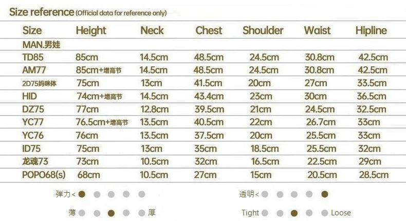 ※ 各サイズはメーカー公式データを記載しています。実際のドール・アイテムには個体差により多少の誤差があります。