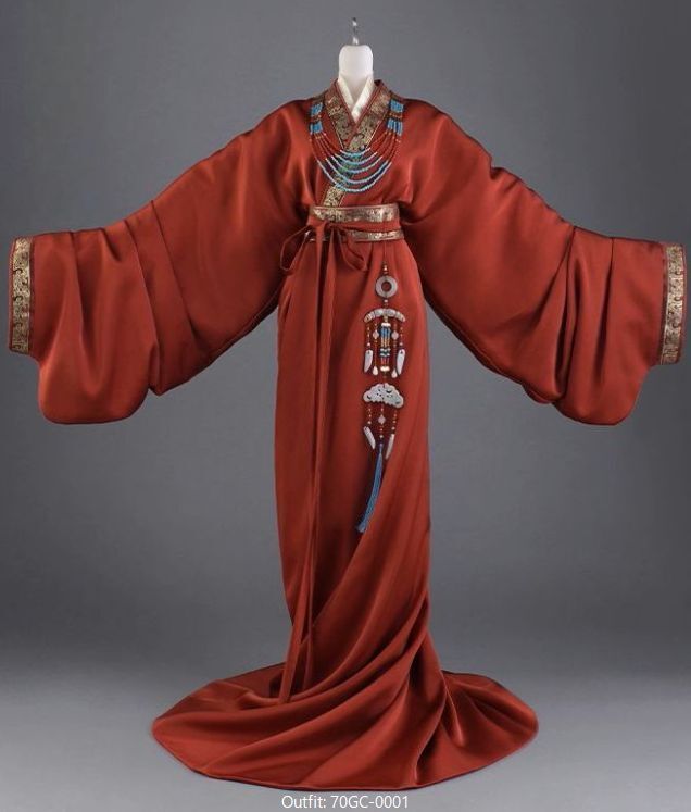 70GC-0001(8点セット): スカート、外衣、内衣、帯×2、ネックレス、ペンダント、スカーフ、簪(Gift: LHAP-0069)