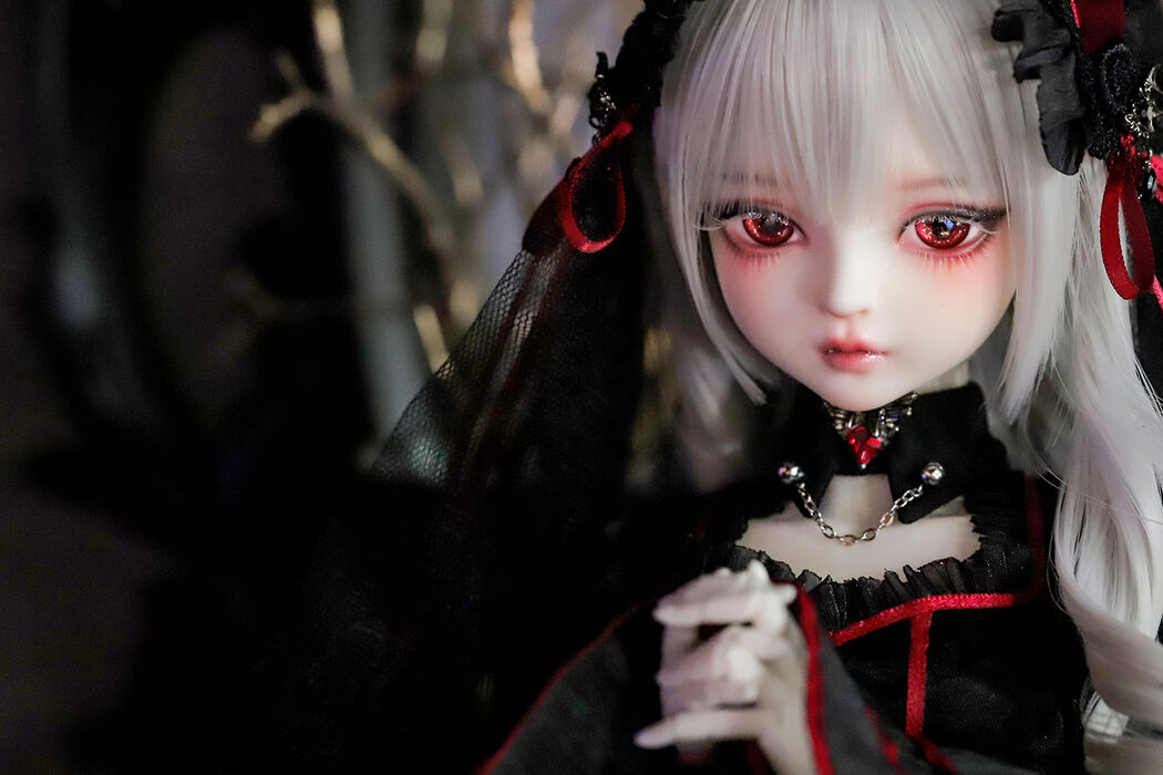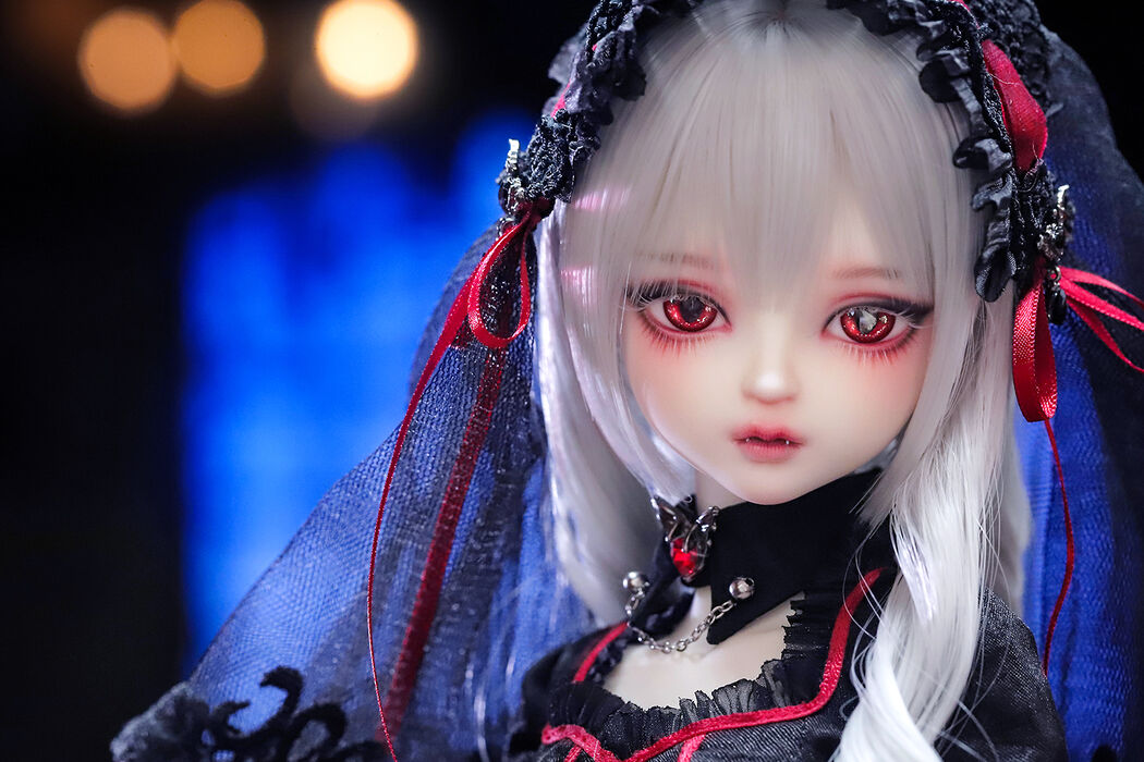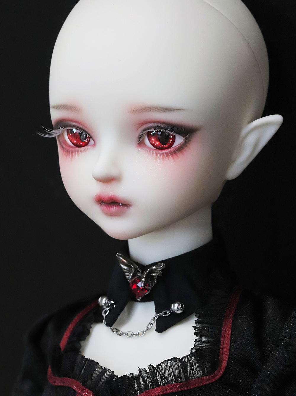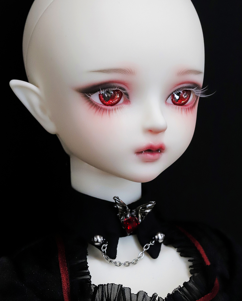 DOLKとMYOU DOLLの共同開発により、美少女ドール・Deliaをベースとした完全新作の吸血鬼ヘッド造形と、MYOU DOLLの歴史で最も白い肌となったコラボ限定のスキンカラー「pale skin」が採用された、コラボ限定のV.Deliaが誕生しました。