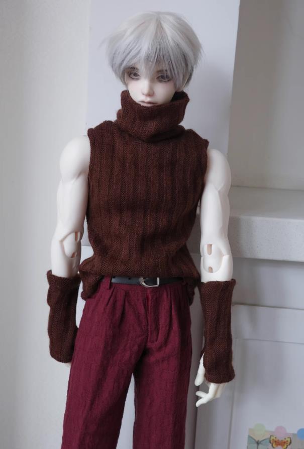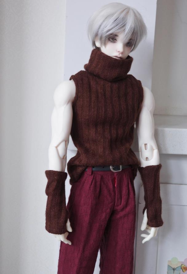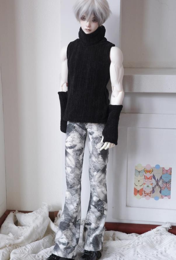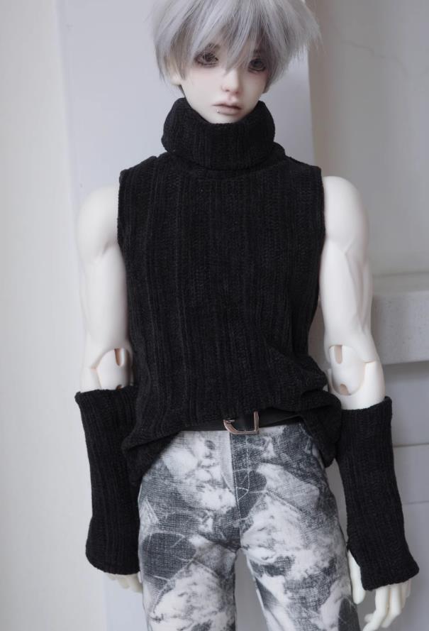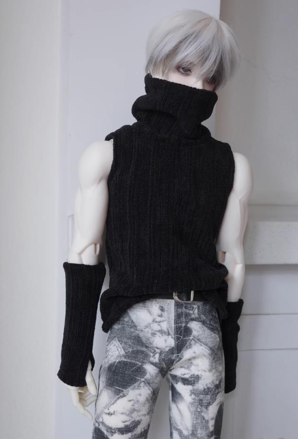 ノースリーブタートルネックニット&アームウォーマー:黒(40cm,MSD対応)