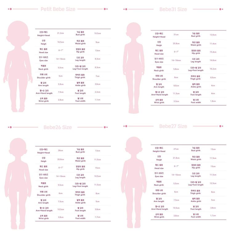※ 各サイズはメーカー公式データを記載しています。実際のドール・アイテムには個体差により多少の誤差があります。