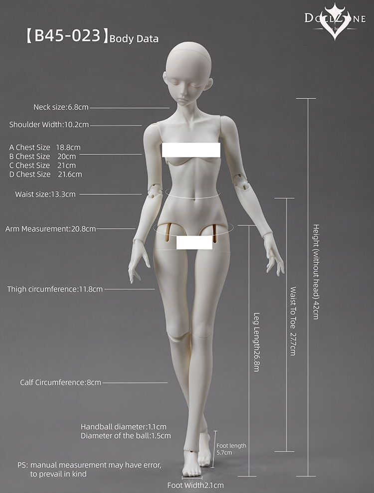 ドール本体、またはモデルドール、または商品のサイズ情報が表示されます。