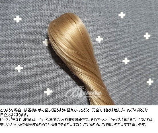 ・スタイリング上、毛量を最小限に抑えているため、若干キャップが透けて見えることがあります。