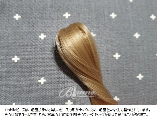 Dahlia:外側と内側で異なる色のファイバーを使用したツートンカラーのウィッグです。