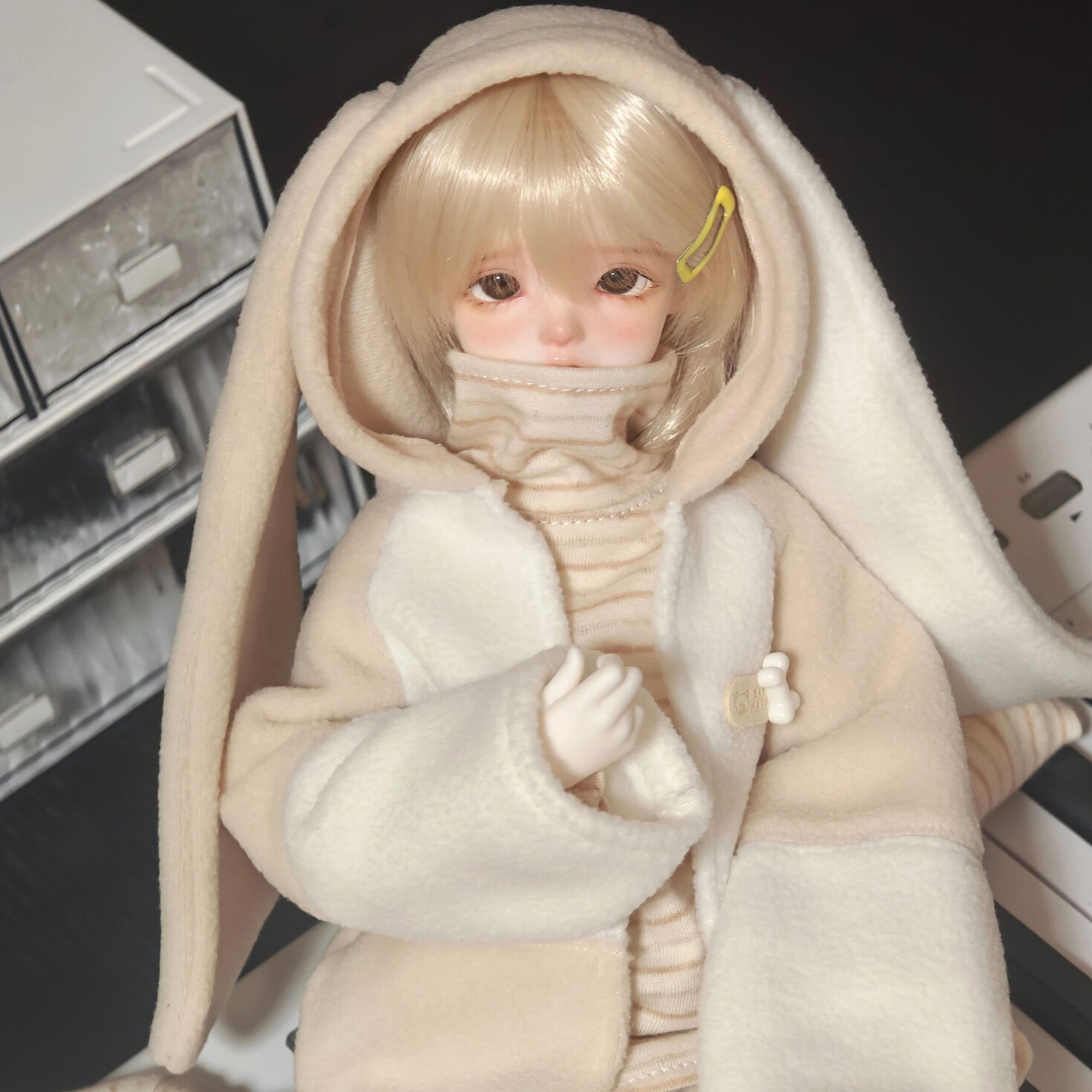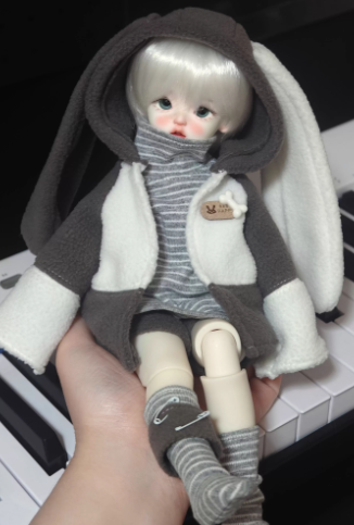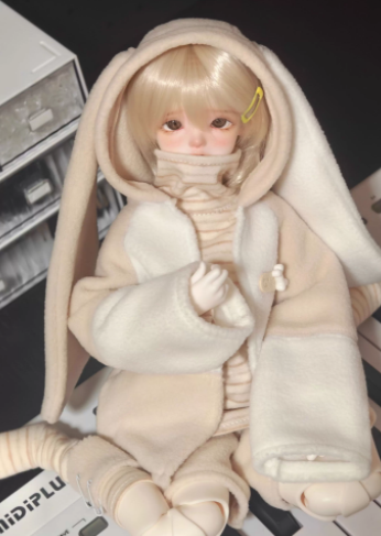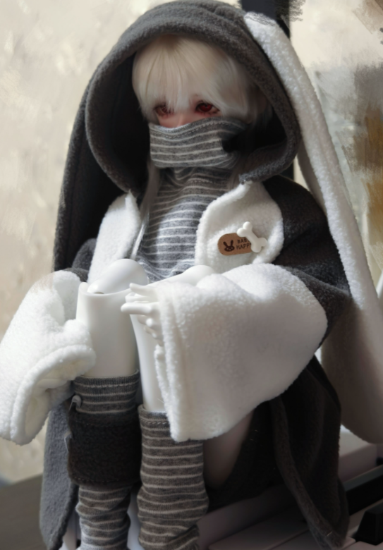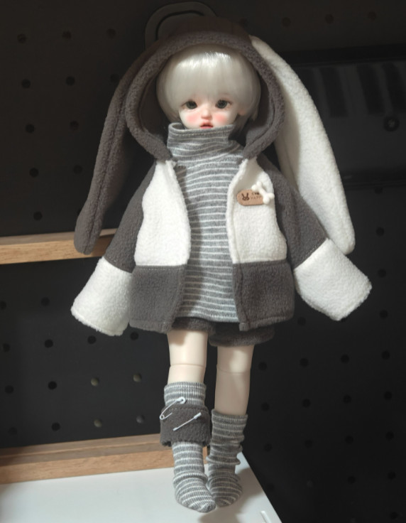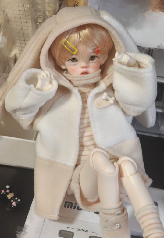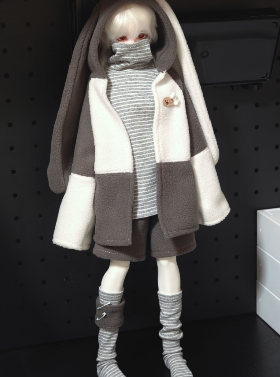 • バニーイヤーパーカーファッションセット:ベージュ(30cm対応)