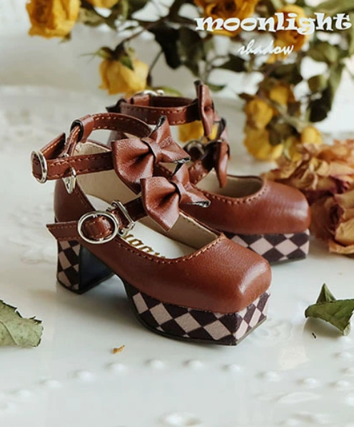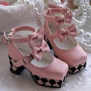 • リボンストラップ圧底パンプス:ピンク/格子底(40cm,MSD対応)