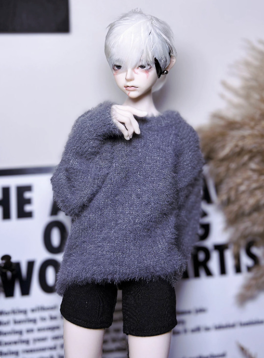 • ラウンドネックシャギーニットセーター:ホワイト(70cm,73cm対応)