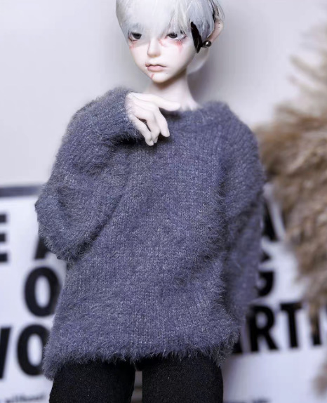 ラウンドネックシャギーニットセーター:ブラック(70cm,73cm対応)