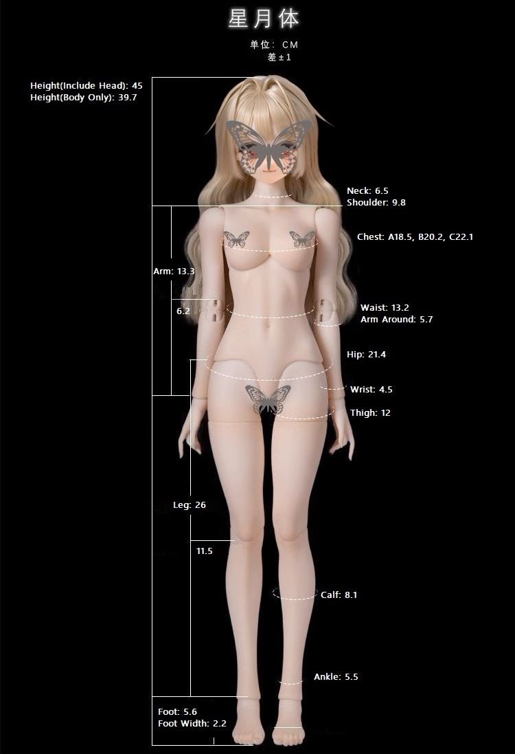 1/4 Girl (星月体): B胸 45 18 6.5 9.8 19.6 13.2 21.4 13.3 4.5 26 12 5.6 2.2 7~8 14