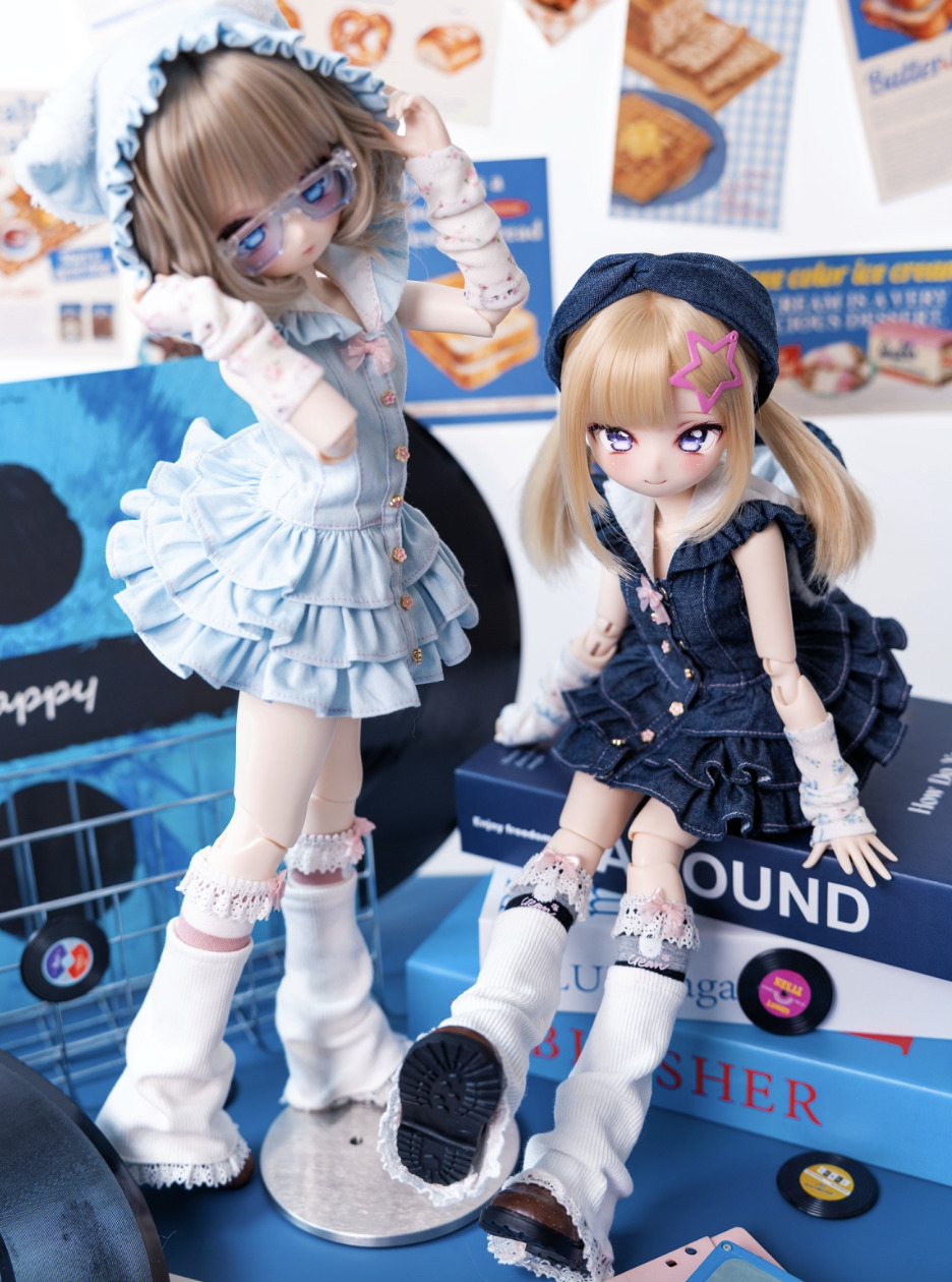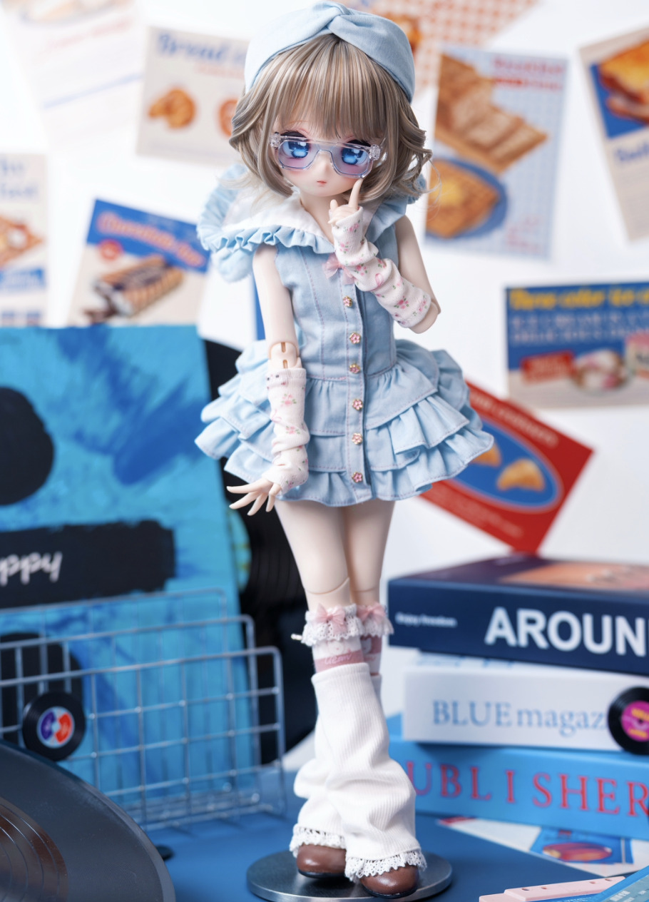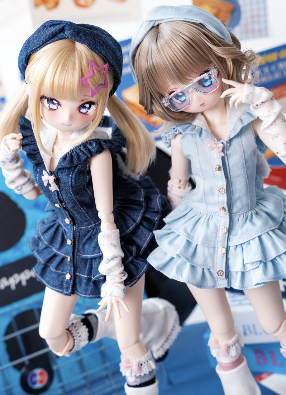 カジュアルドレス・ニャンニャンミルフィーユ:スカイブルー(40cm,MDD対応)