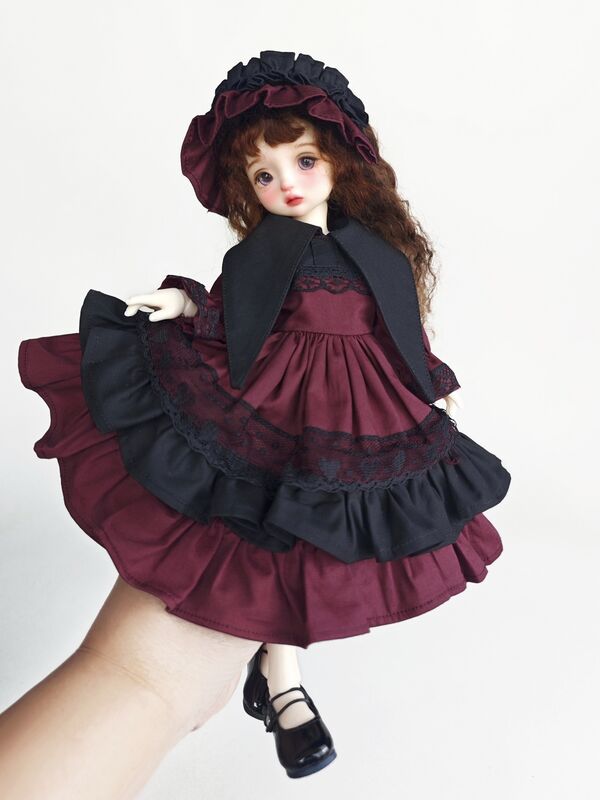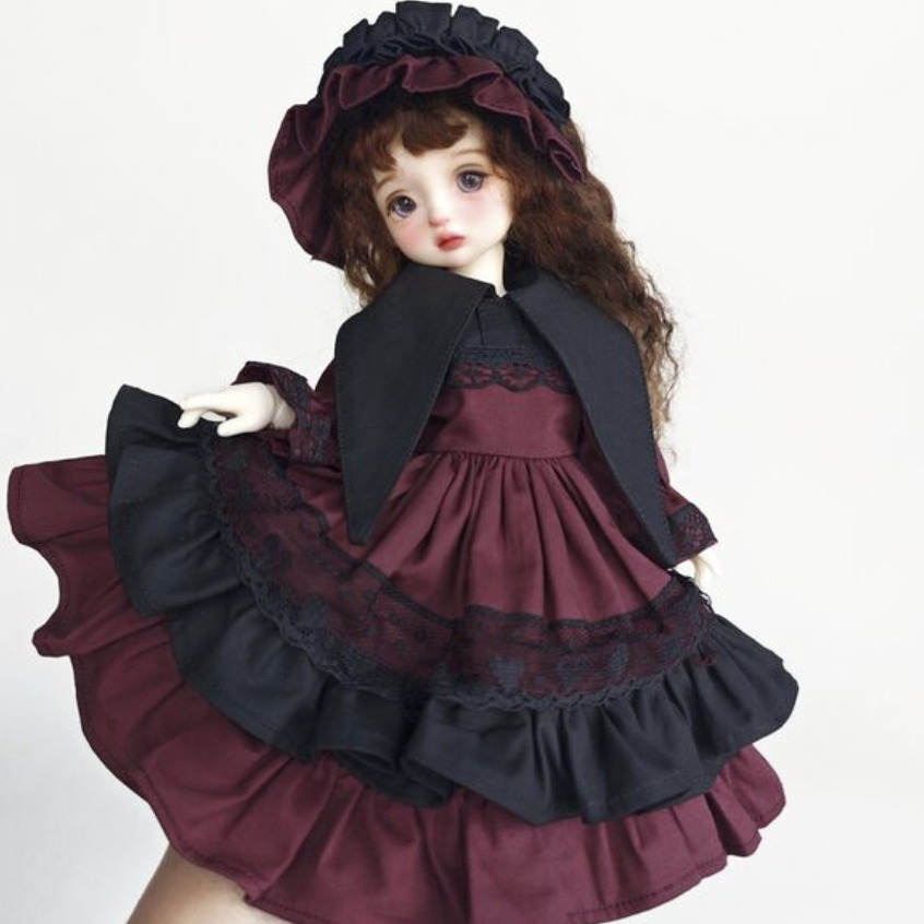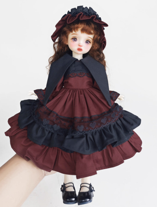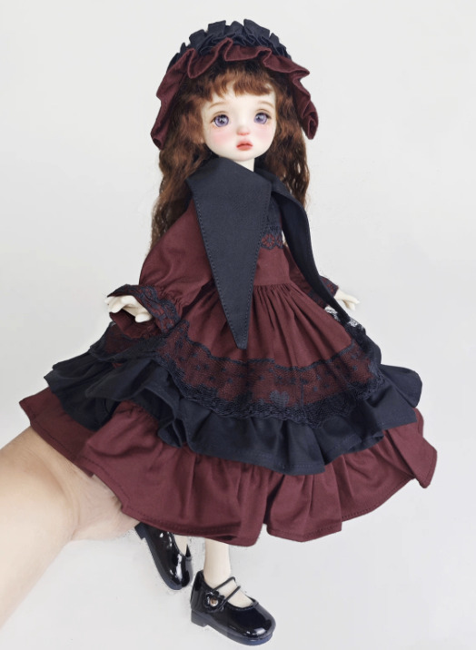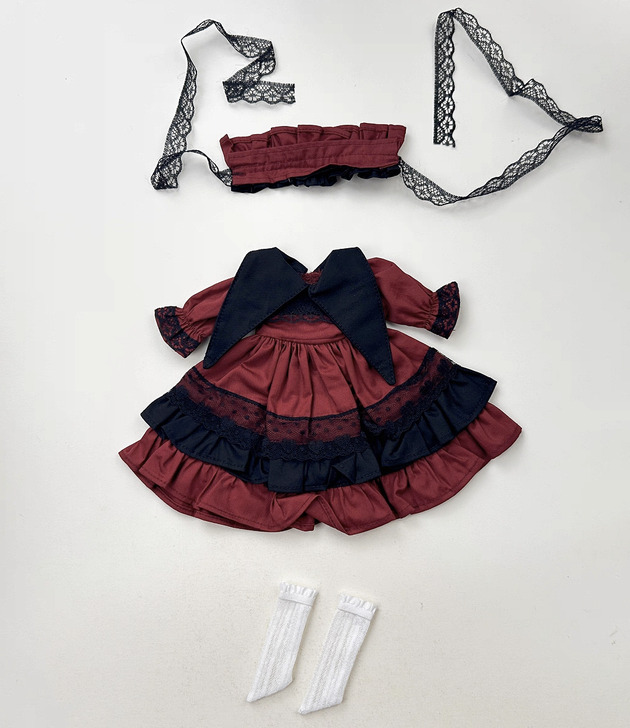ブラックカーラーワインレッドフリルドレス(30cm対応)