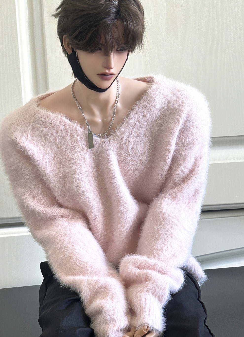 もこもこVネックニット&マフラー:ホワイト(70cm,73cm対応)