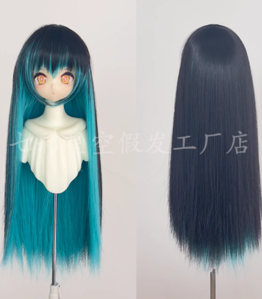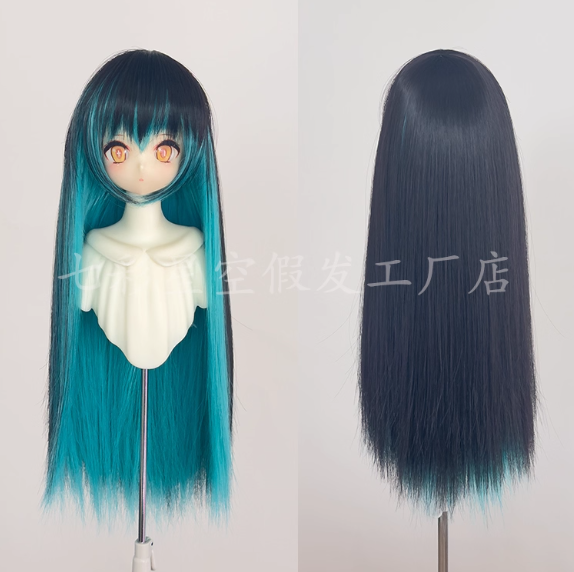 • ダブルカラーロングヘア:黒xエメラルドグリーン(8-9inch対応)
