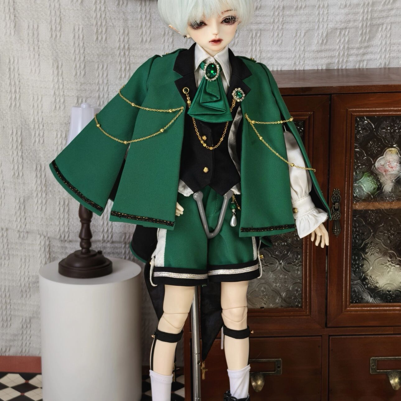 ボーイズテールコート:グリーン/白シャツ/銀装飾(40cm対応)