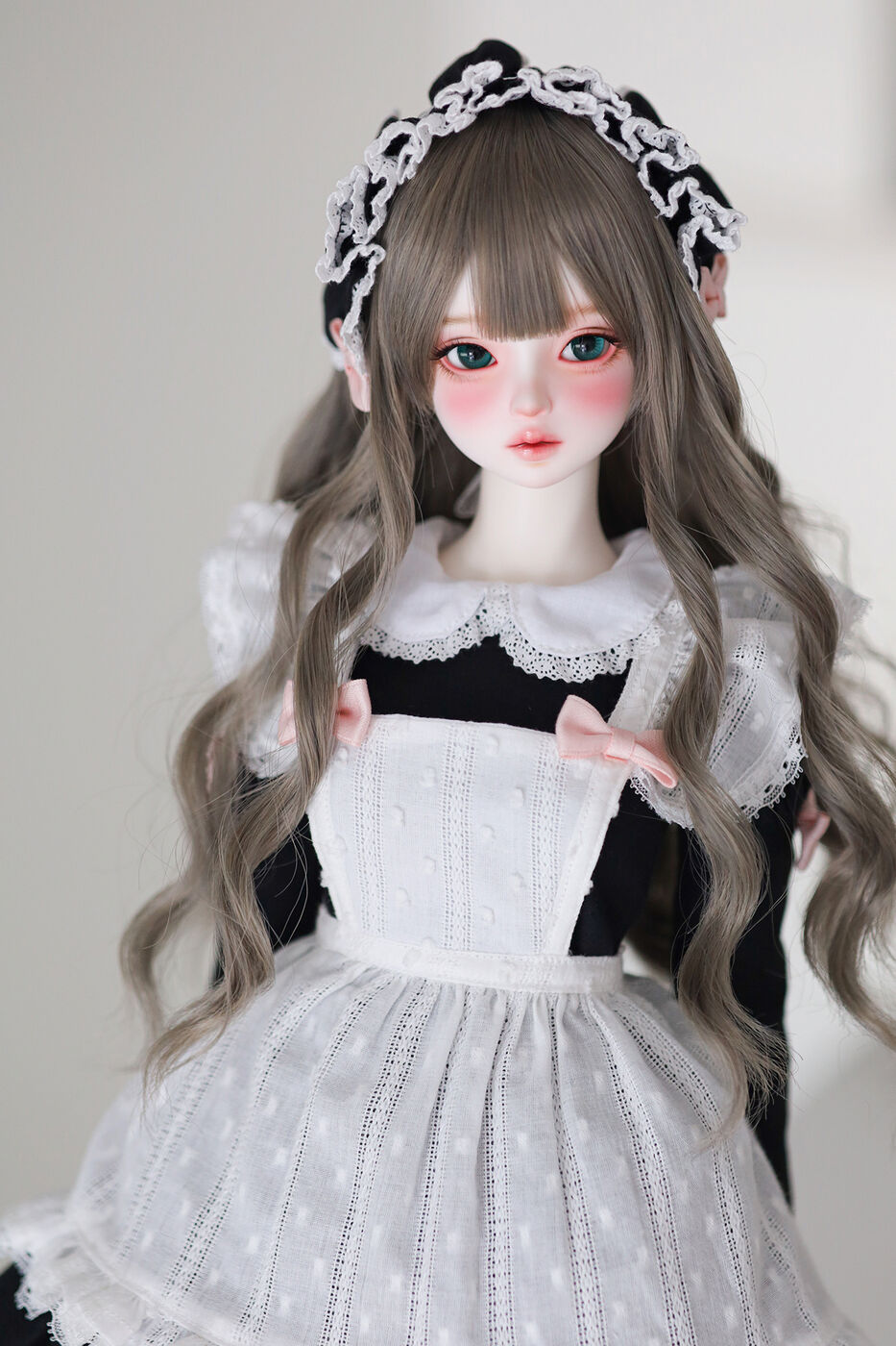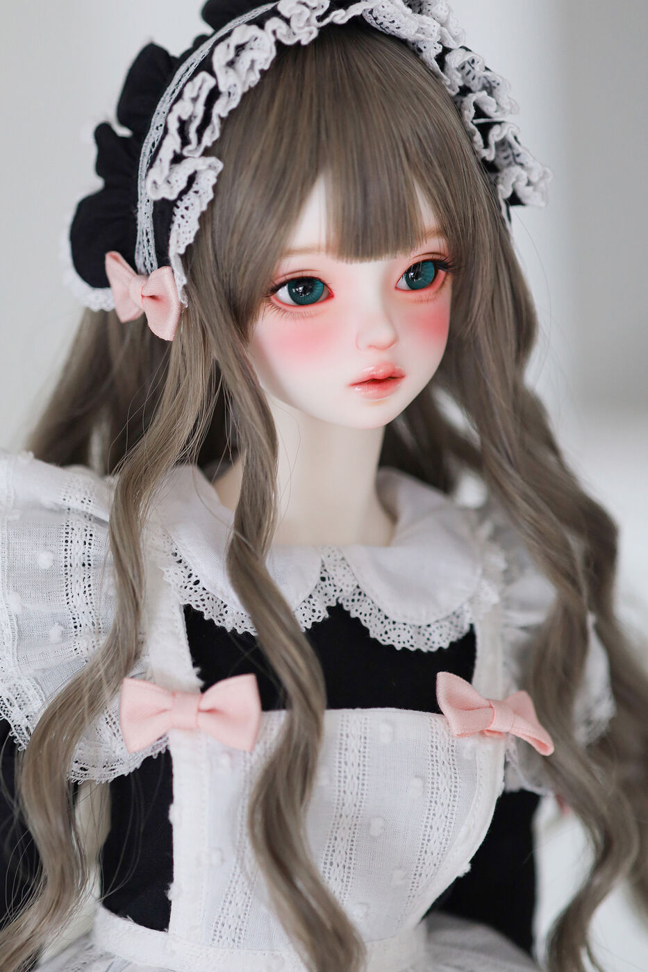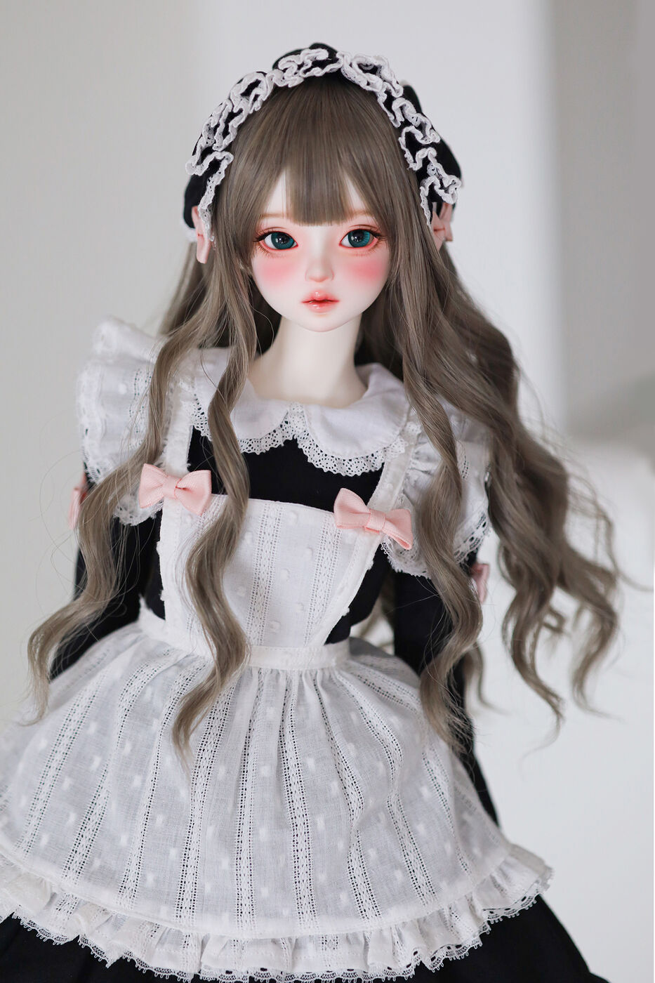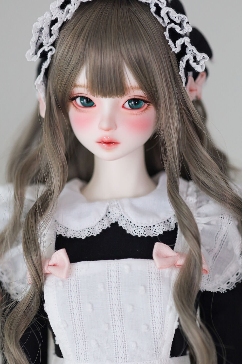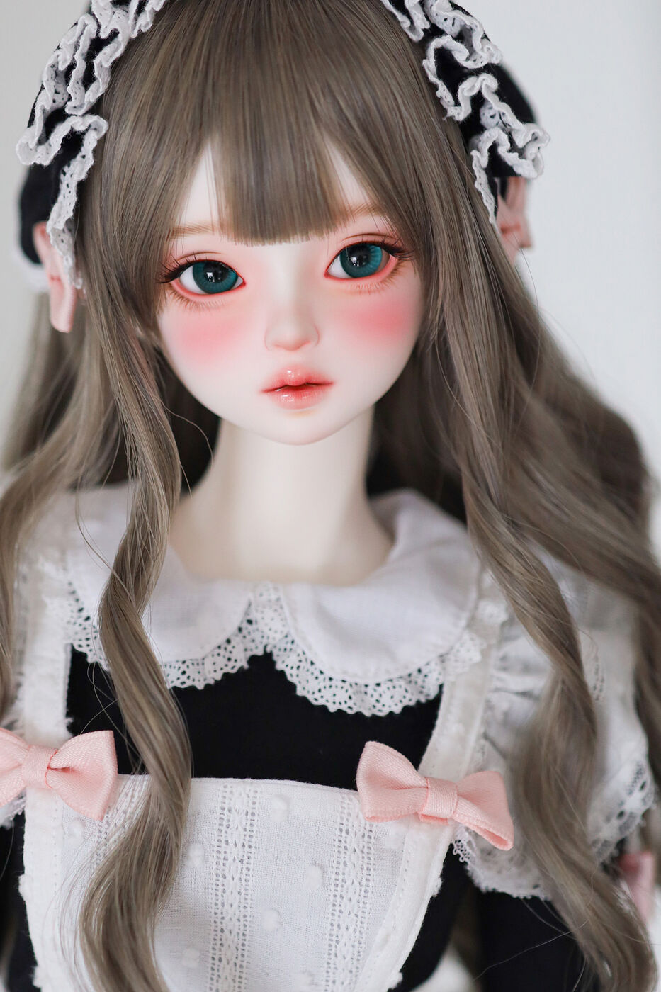 さらに、今作では最新の「Nina 64 body」が採用され、よりセクシーで大人びた芸術的なボディラインが叶えられました。その美しいスタイルを際立たせるのは、淡いピンクのリボンがアクセントとなった、ドール服作家 Luna 氏によるメイド服です。