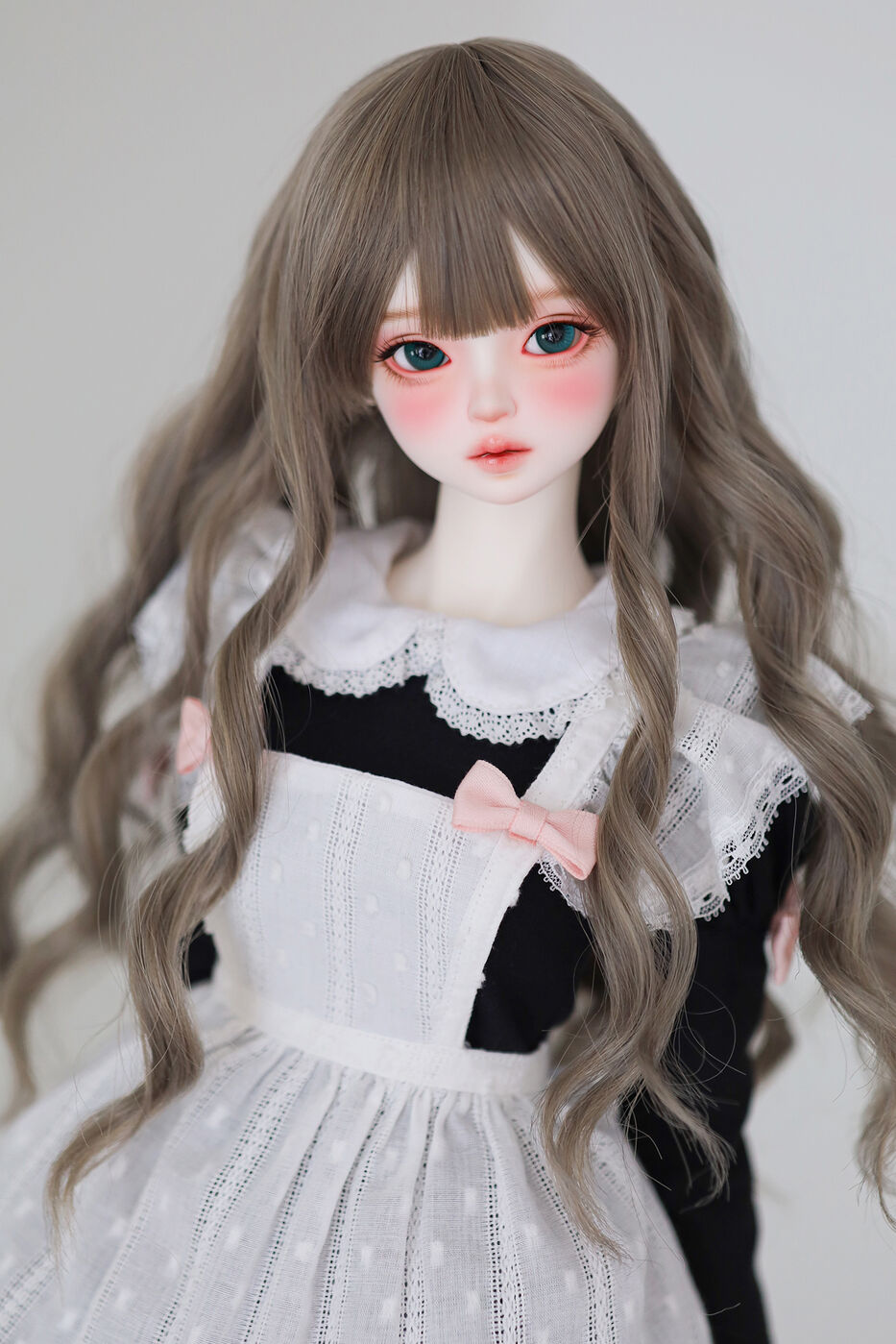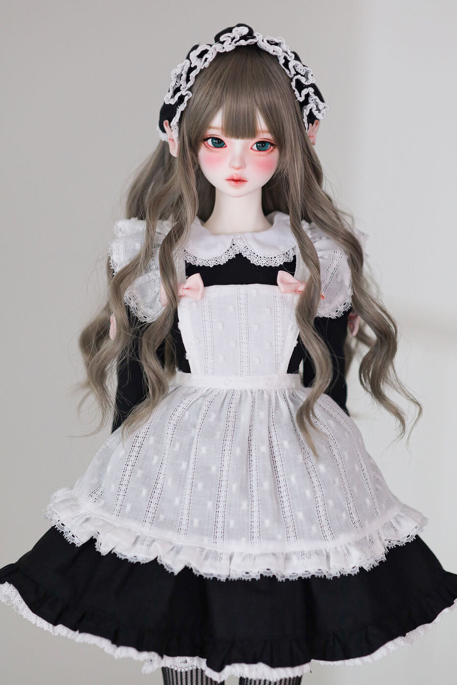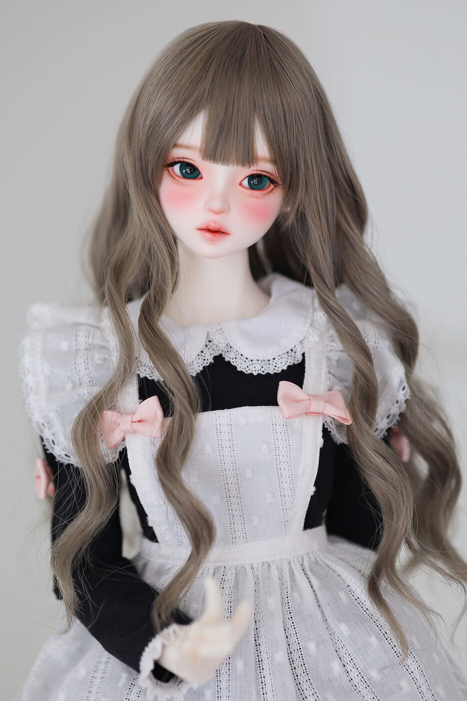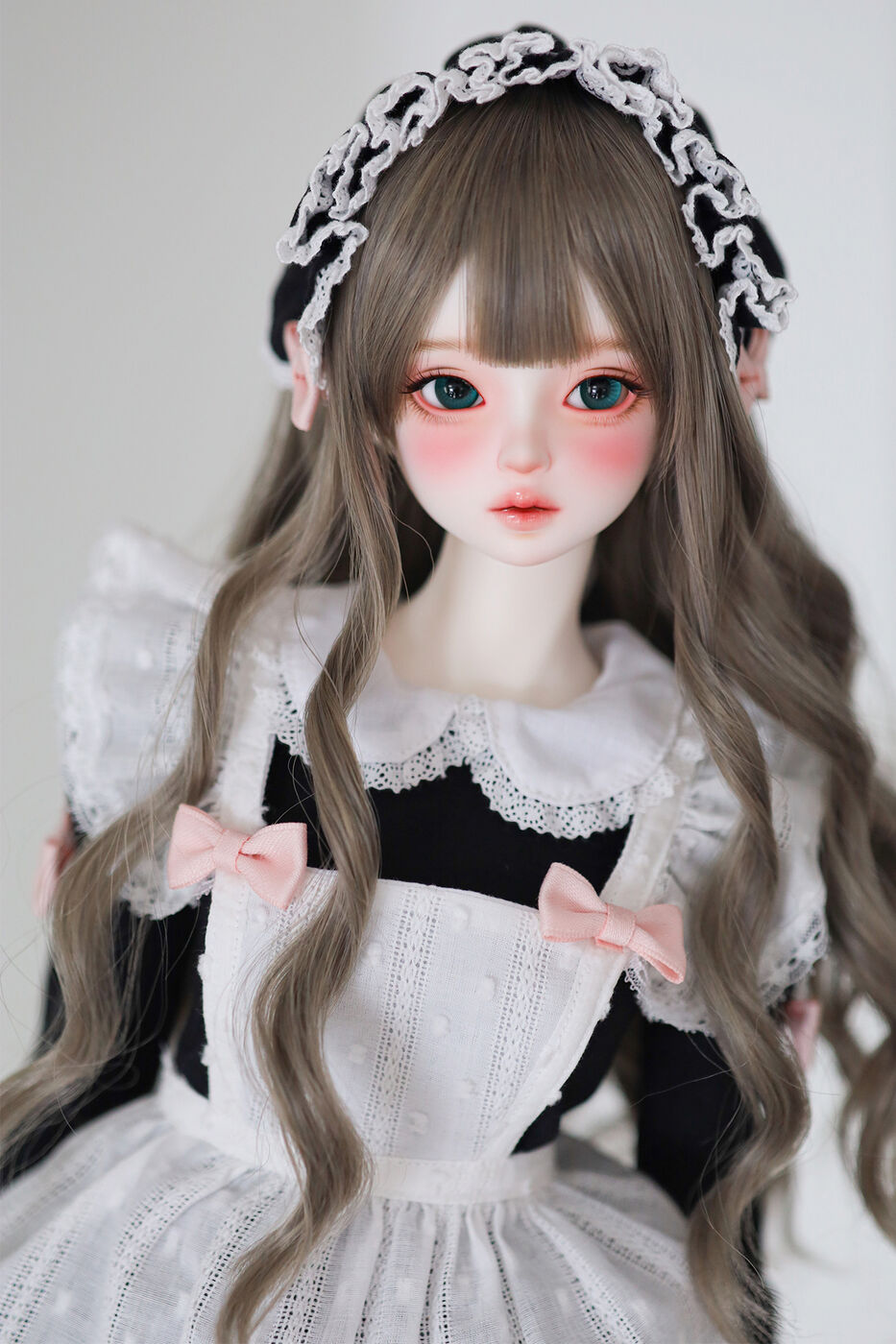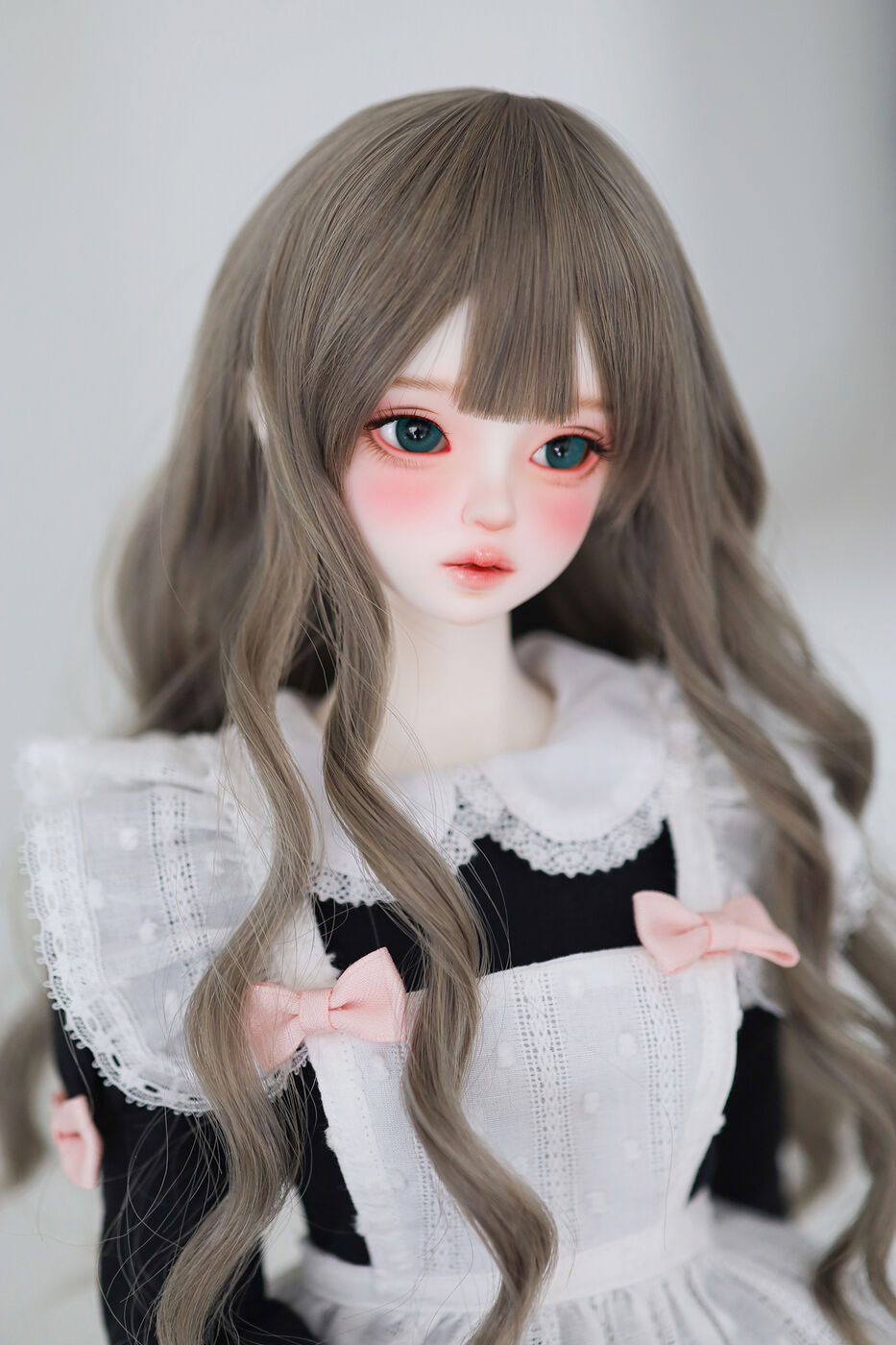 さらに、今作では最新の「Nina 64 body」が採用され、よりセクシーで大人びた芸術的なボディラインが叶えられました。その美しいスタイルを際立たせるのは、淡いピンクのリボンがアクセントとなった、ドール服作家 Luna 氏によるメイド服です。