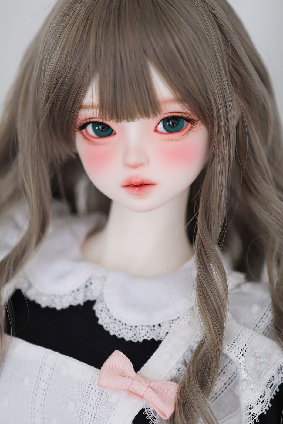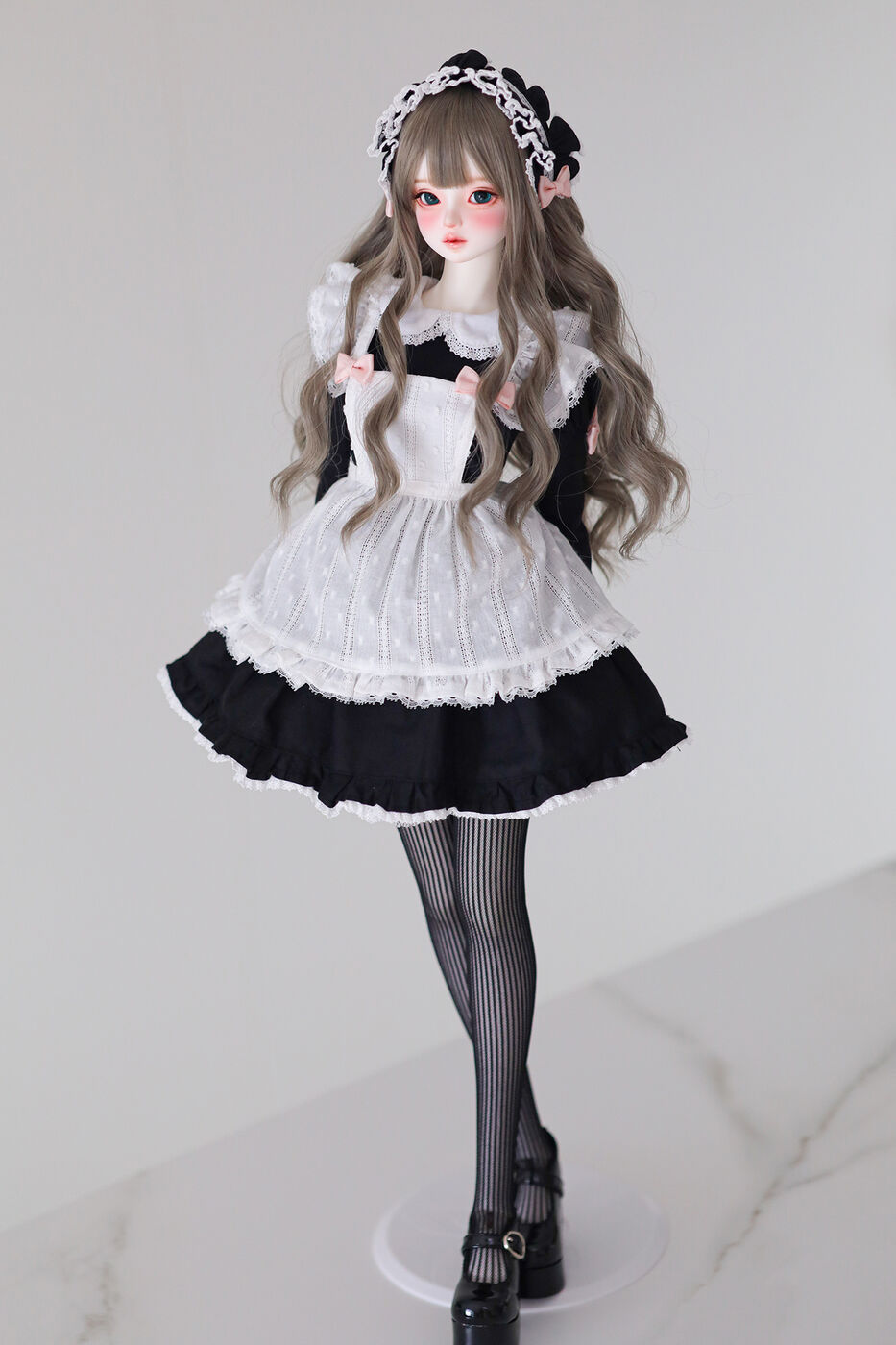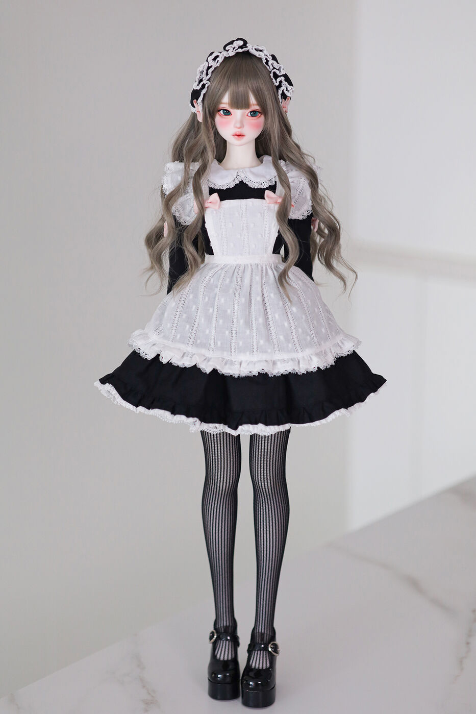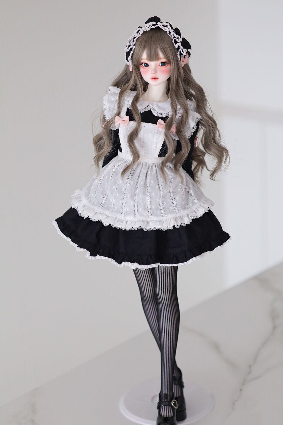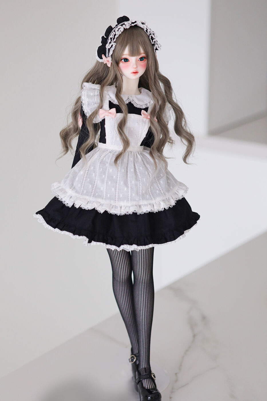 さらに、今作では最新の「Nina 64 body」が採用され、よりセクシーで大人びた芸術的なボディラインが叶えられました。その美しいスタイルを際立たせるのは、淡いピンクのリボンがアクセントとなった、ドール服作家 Luna 氏によるメイド服です。