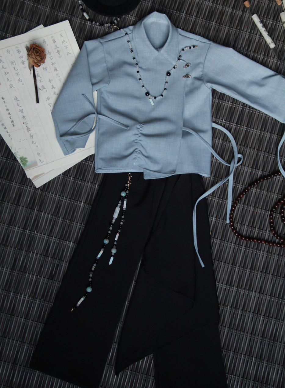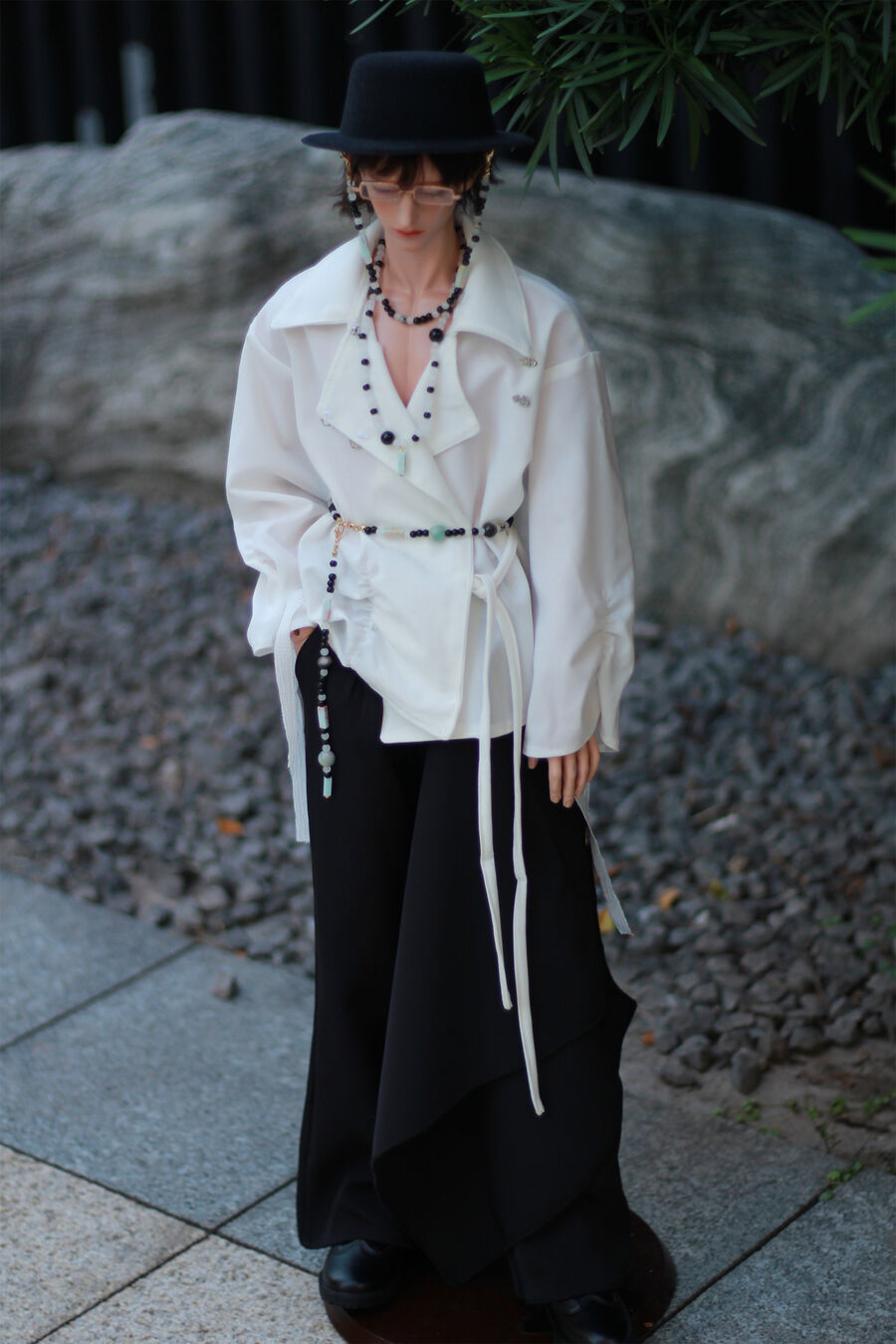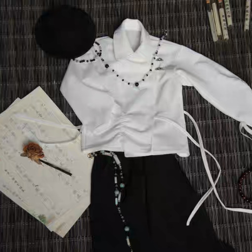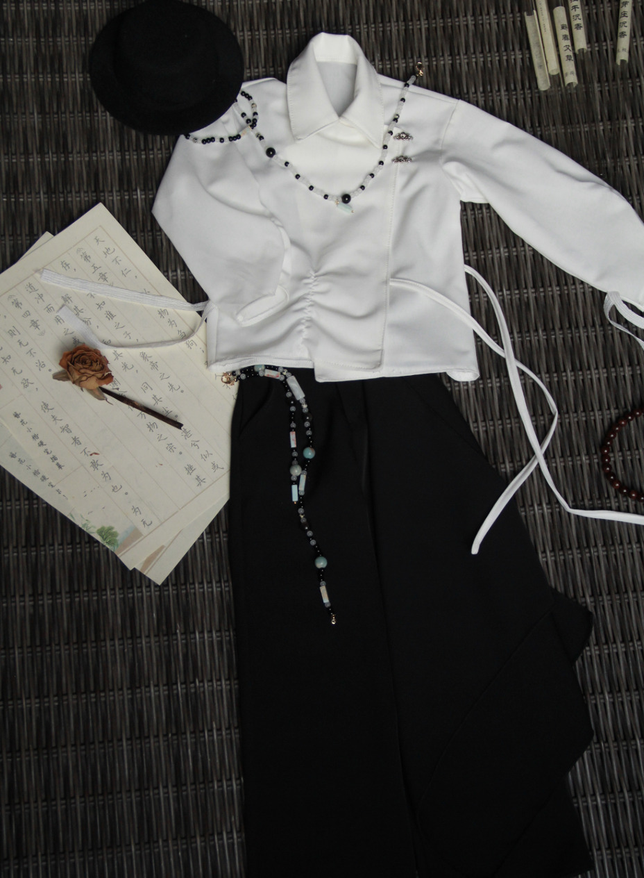 • ウェスト紐ブラウスコーデセット:ホワイト(70cm対応)