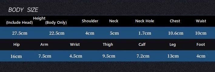 ドール本体、またはモデルドール、または商品のサイズ情報が表示されます。