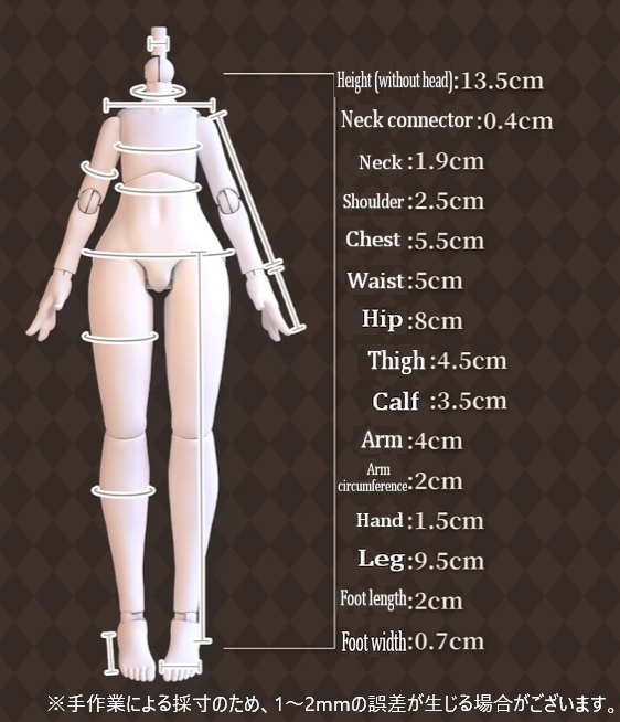 ※ 各サイズはメーカー公式データを記載しています。実際のドール・アイテムには個体差により多少の誤差があります。