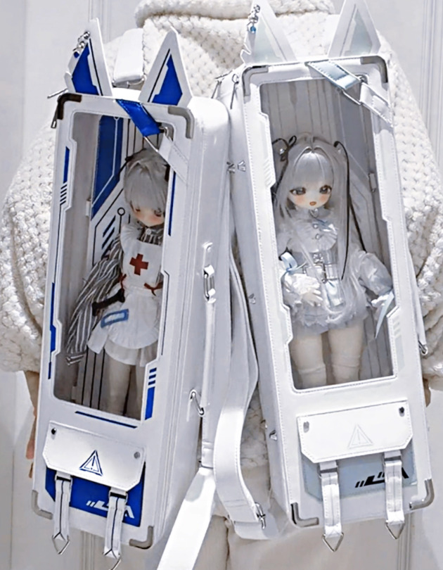 サイバーパンク風ドールバッグ:ライトブルー(40cm対応)