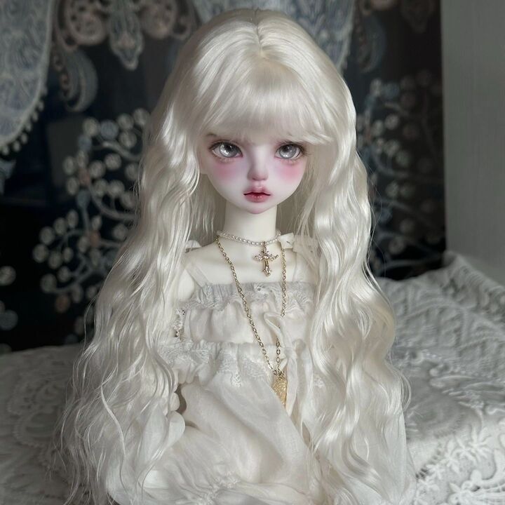 • ふんわりカーリーロングヘア:ホワイト(7-8inch対応)