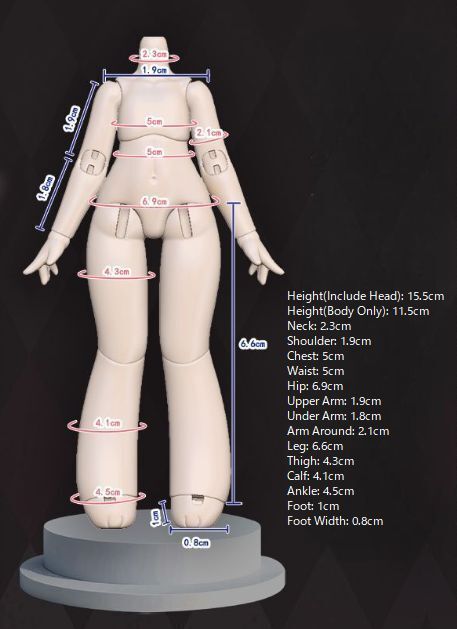 ※ 各サイズはメーカー公式データを記載しています。実際のドール・アイテムには個体差により多少の誤差があります。
