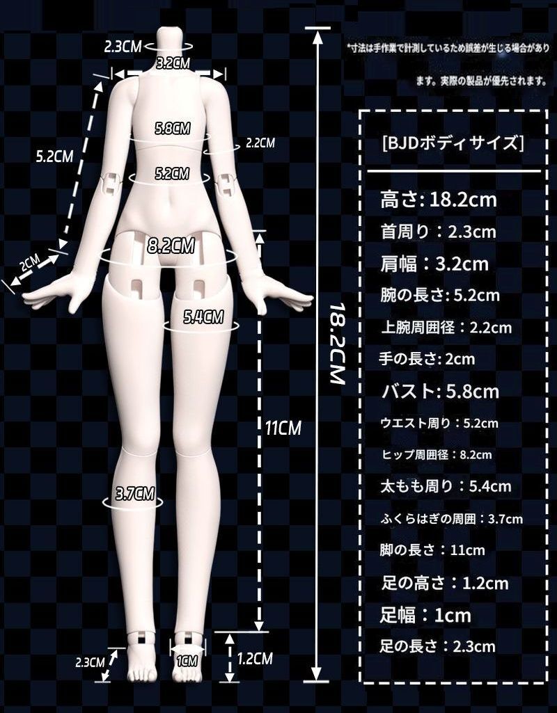 ※ 各サイズはメーカー公式データを記載しています。実際のドール・アイテムには個体差により多少の誤差があります。