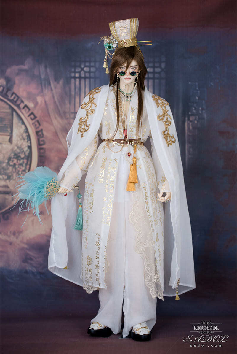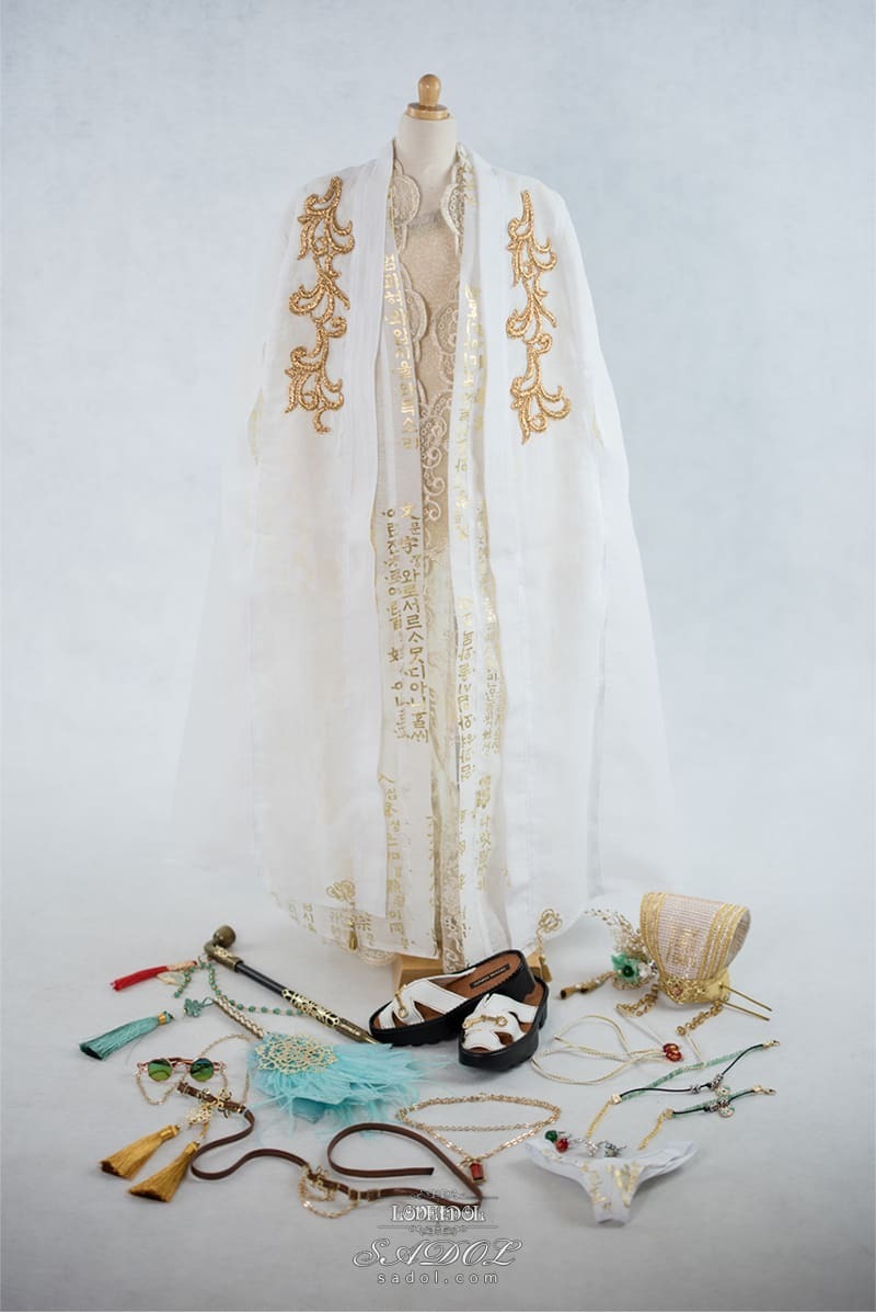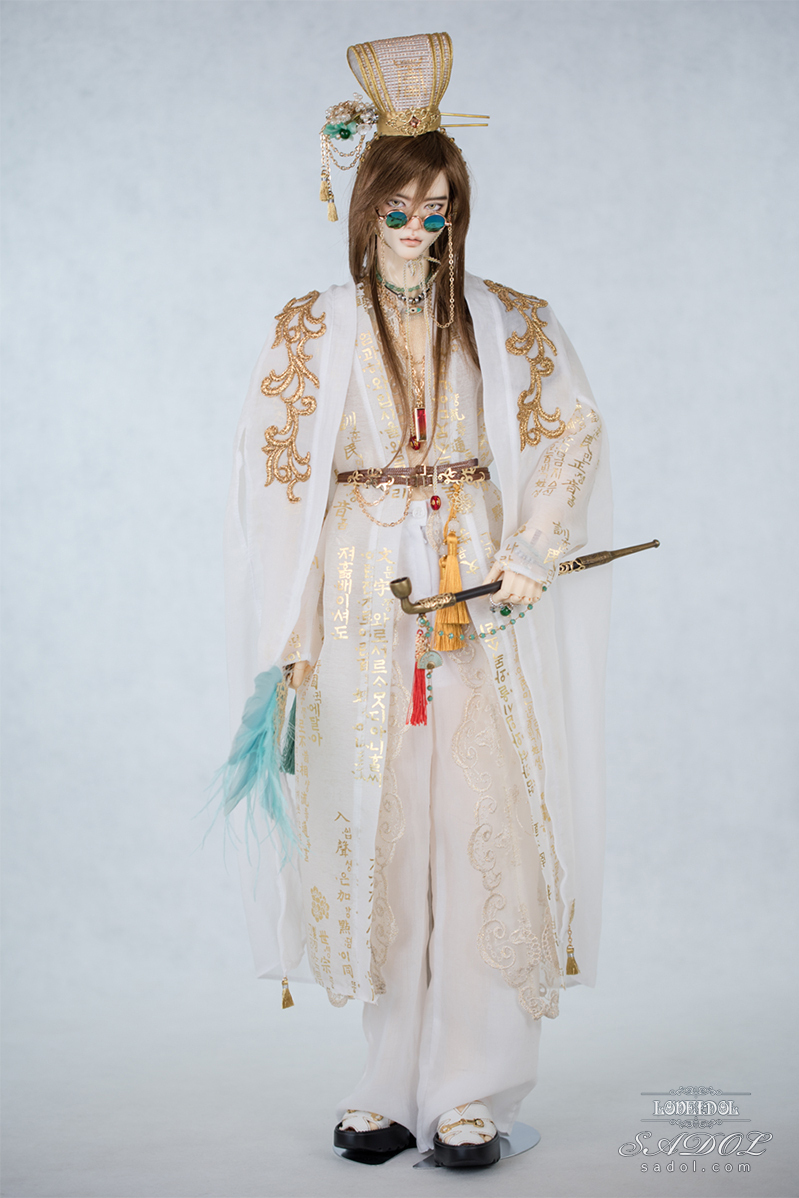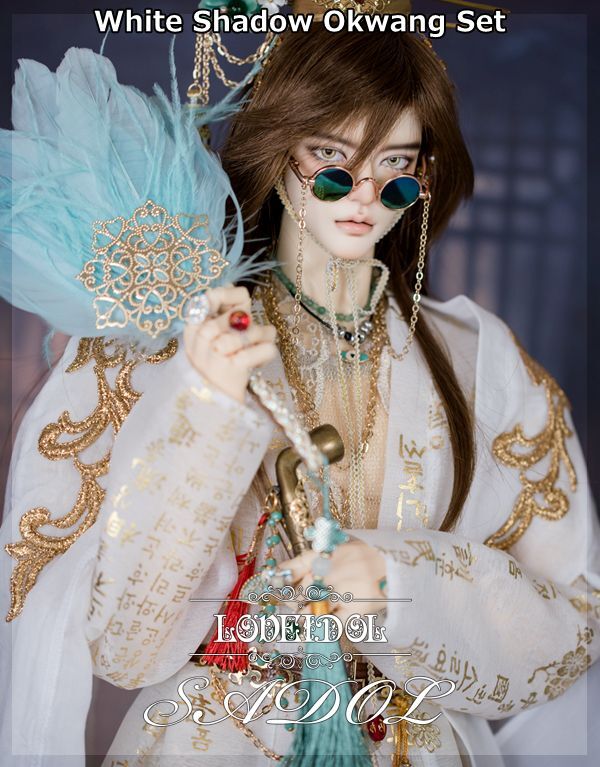 ・White Shadow Okwang Set: シャツ、ベスト、パンツ、ローブ×2、冠、ベルト、扇、サングラス(チェーン付)、スクエアネックレス、Wネックレス&ブレスレットセット、指輪×4、煙管(キセル)、ミュールスリッパ