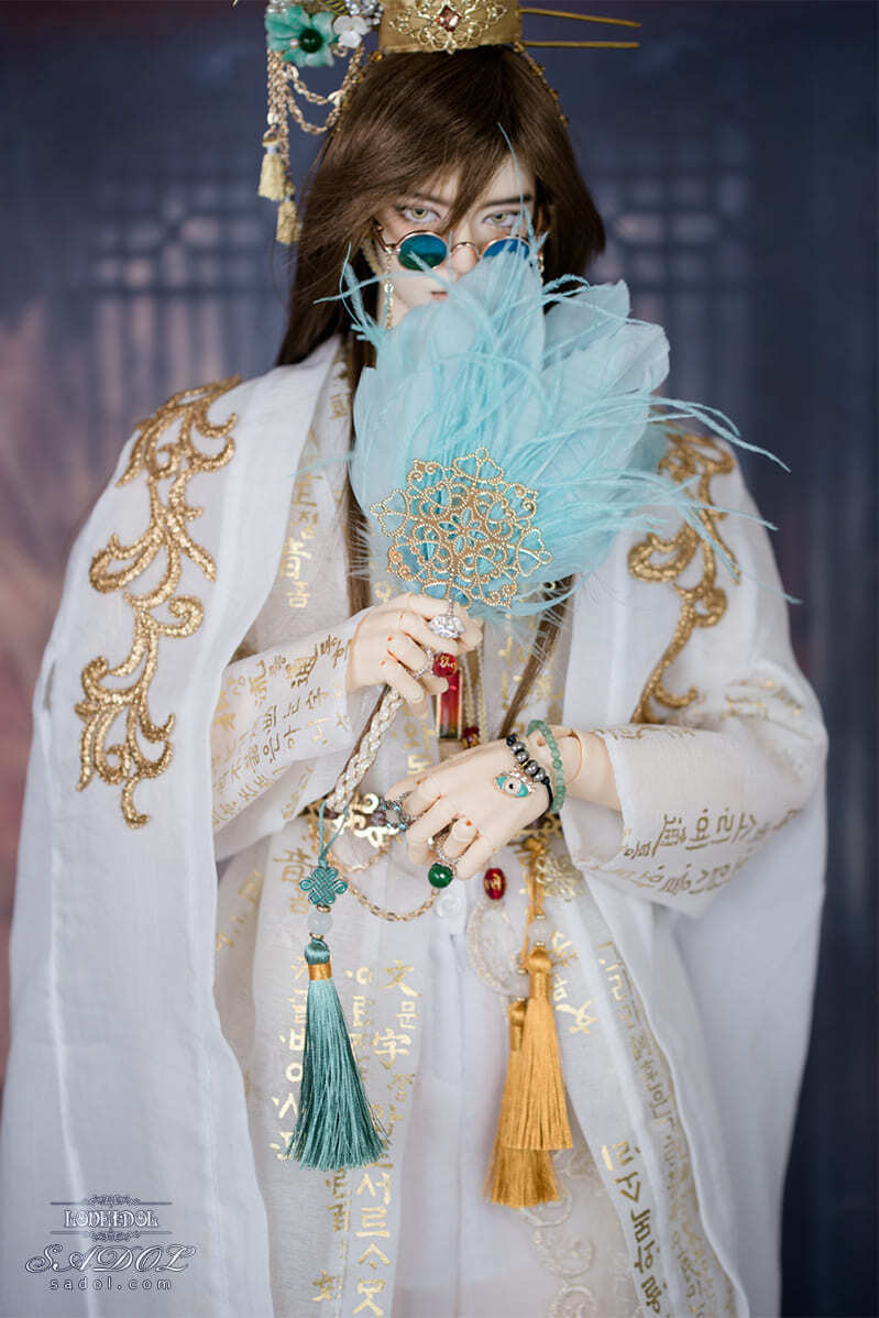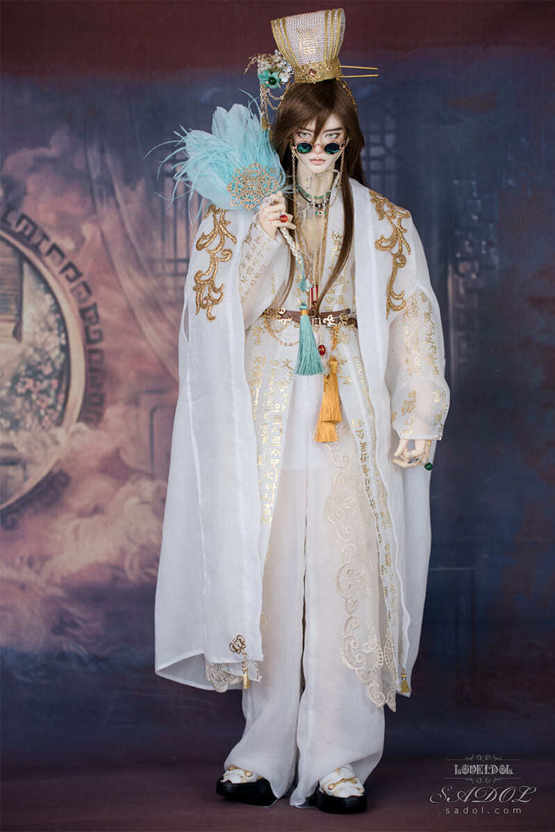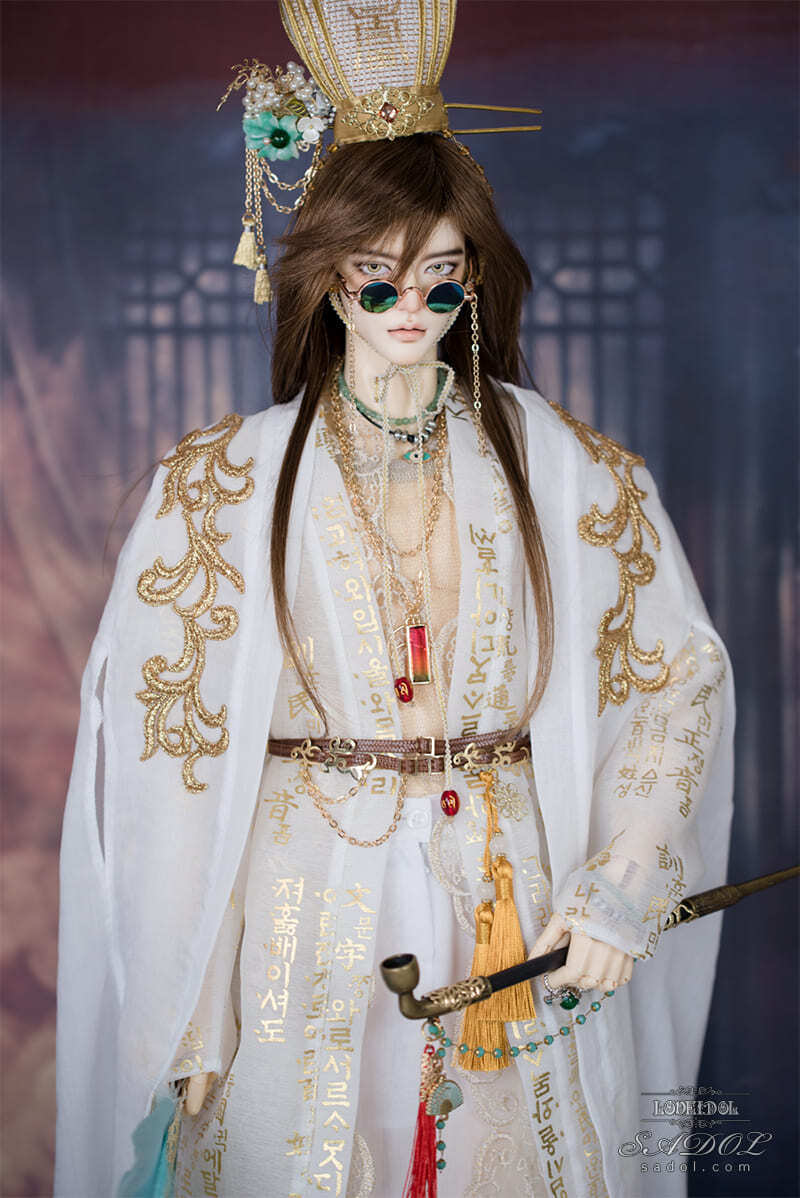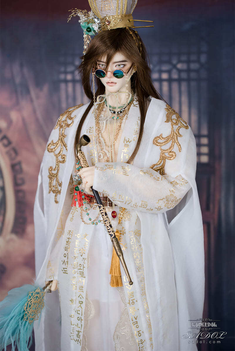 ・White Shadow Okwang Set: シャツ、ベスト、パンツ、ローブ×2、冠、ベルト、扇、サングラス(チェーン付)、スクエアネックレス、Wネックレス&ブレスレットセット、指輪×4、煙管(キセル)、ミュールスリッパ