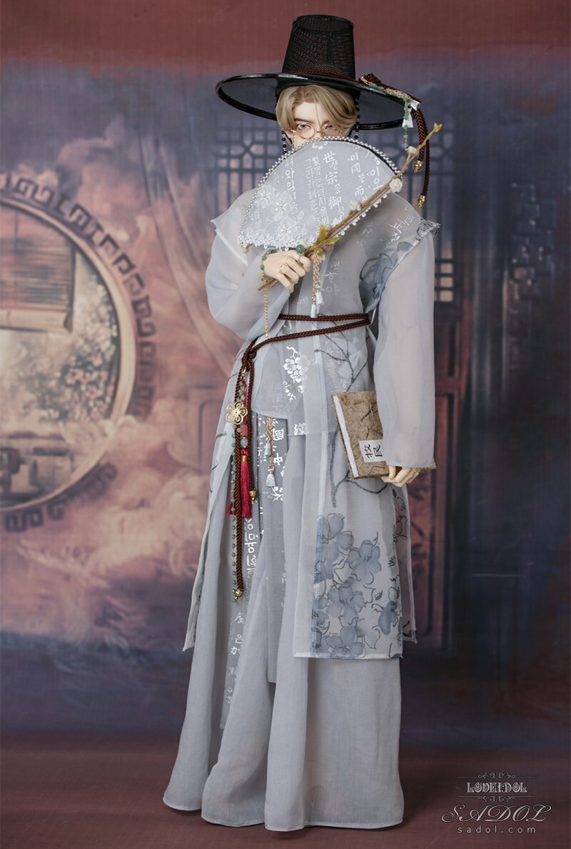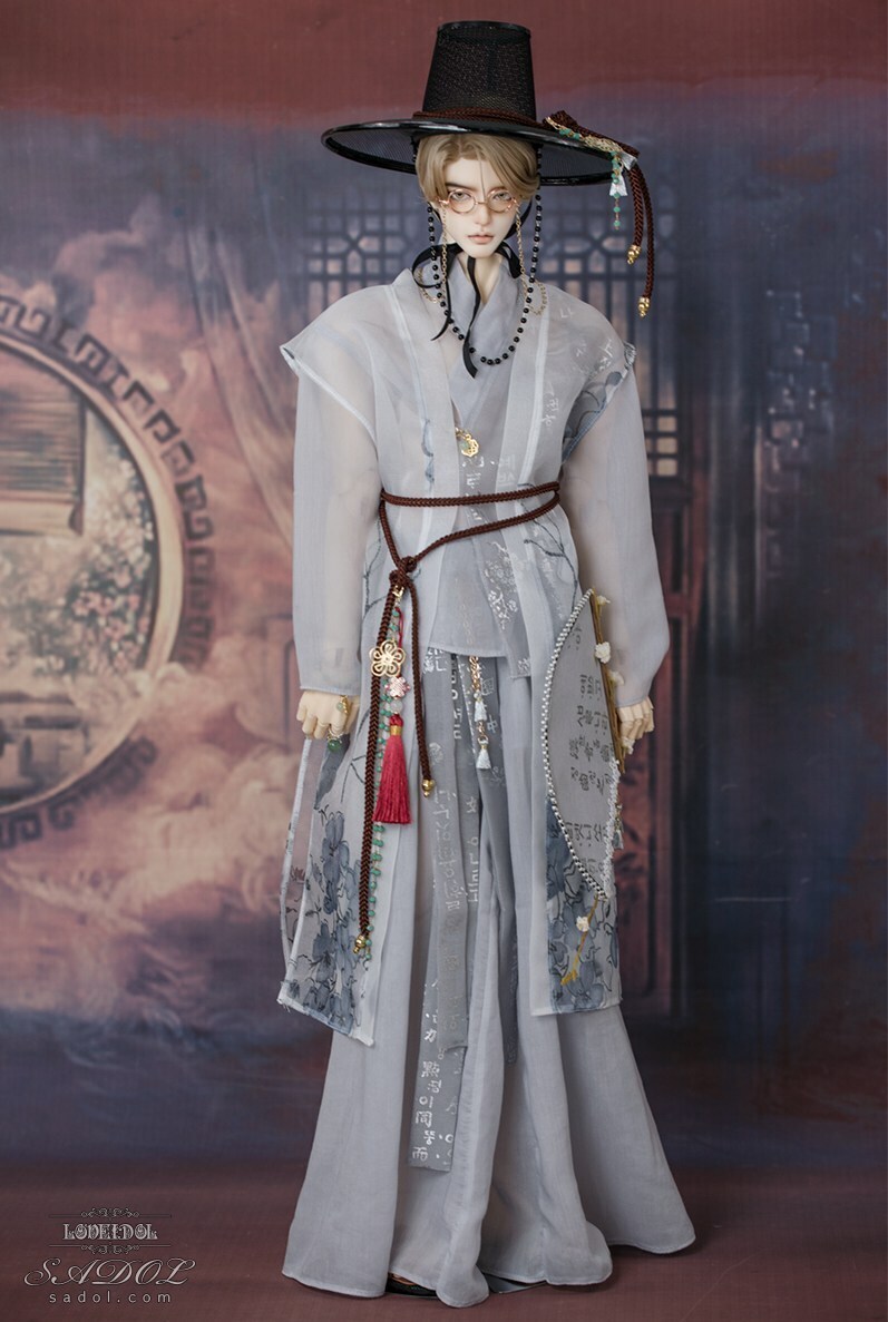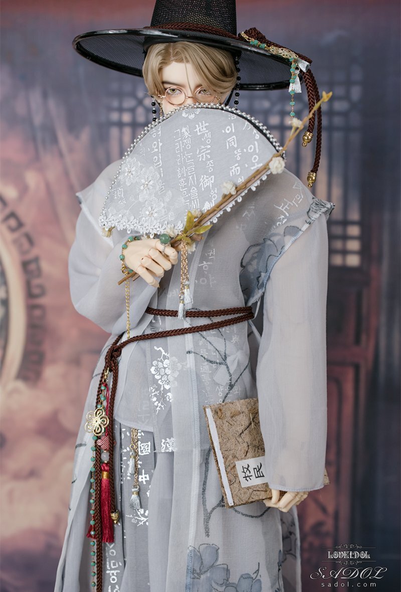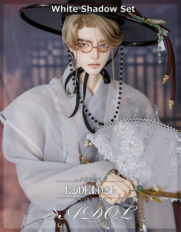 ・White Shadow Set: トップス、ベスト、パンツ、胸紐、帽子、メガネ、扇、アクセサリー飾り(ノリゲ)、書物(古書)、ブレスレット&指輪セット、ミュールスリッパ
