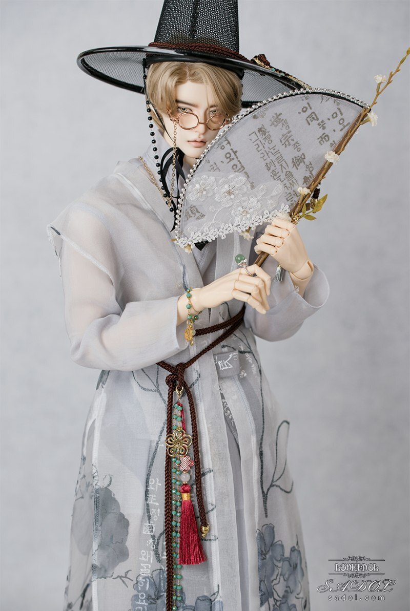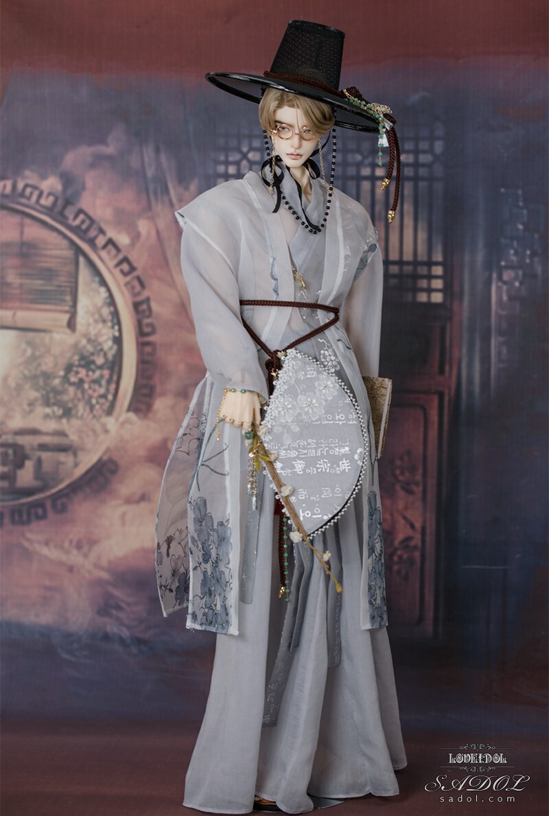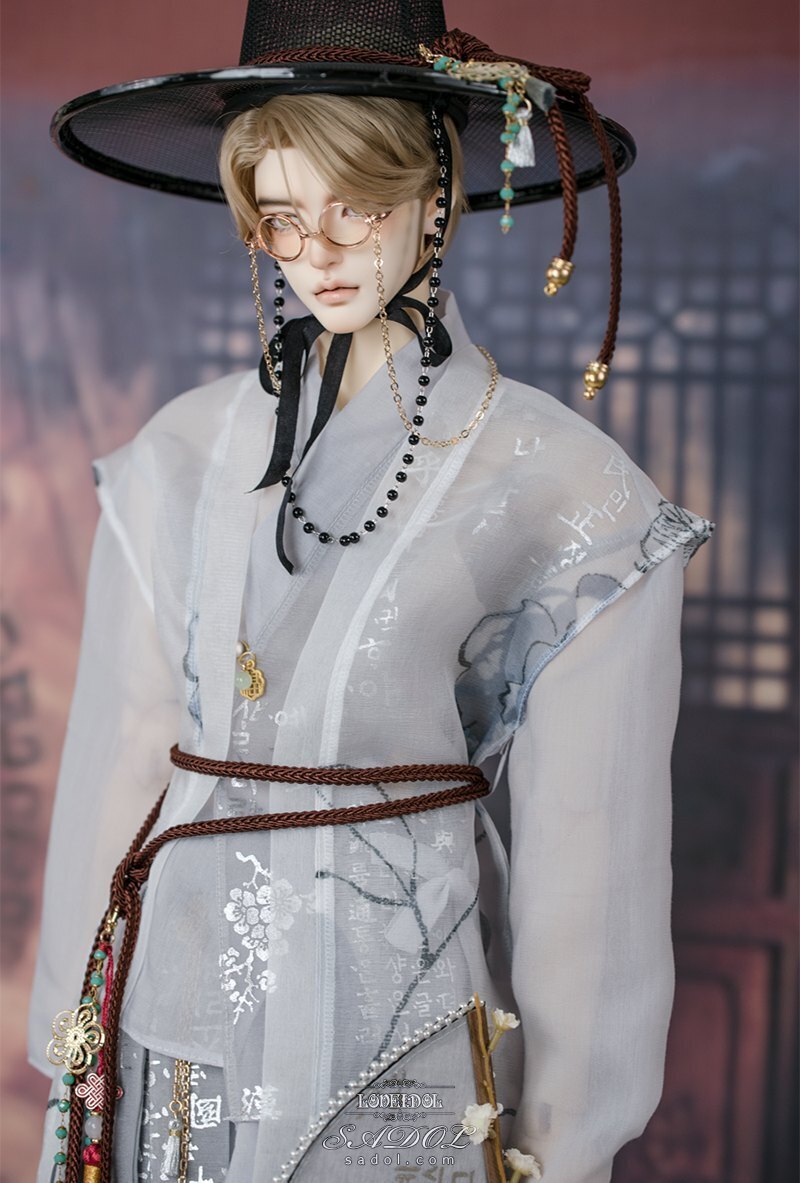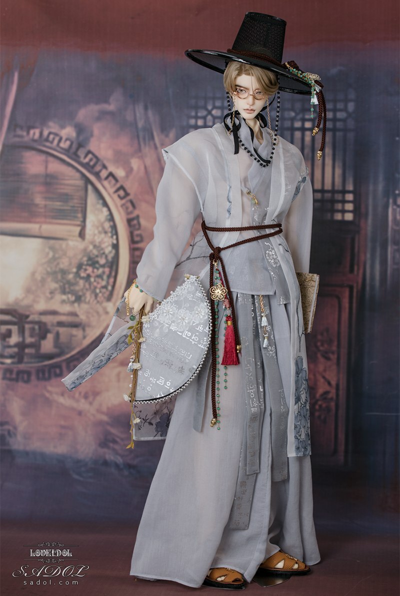 ・White Shadow Set: トップス、ベスト、パンツ、胸紐、帽子、メガネ、扇、アクセサリー飾り(ノリゲ)、書物(古書)、ブレスレット&指輪セット、ミュールスリッパ