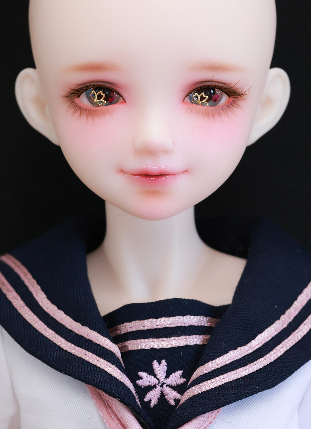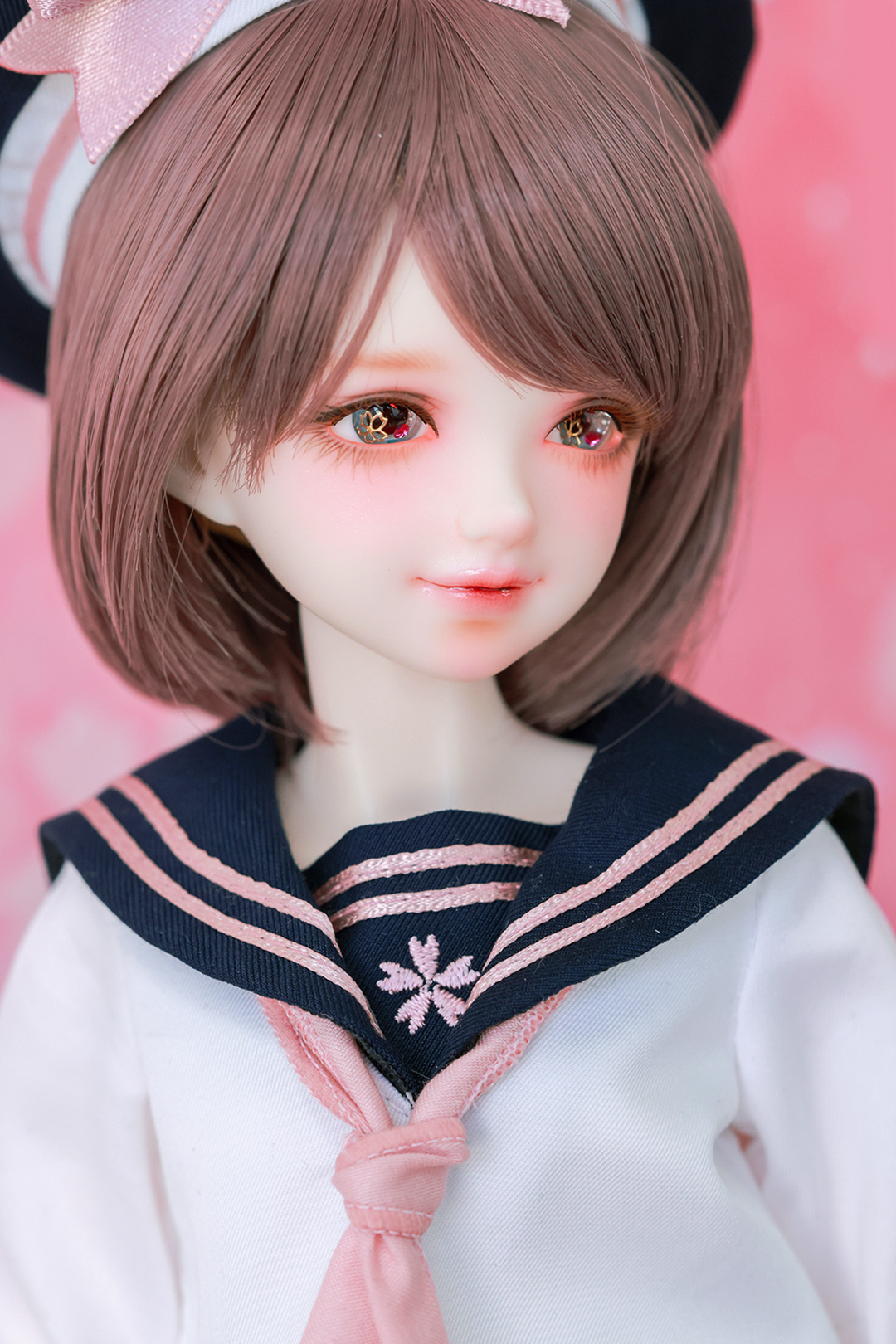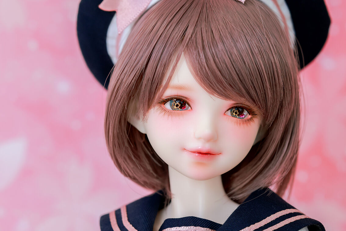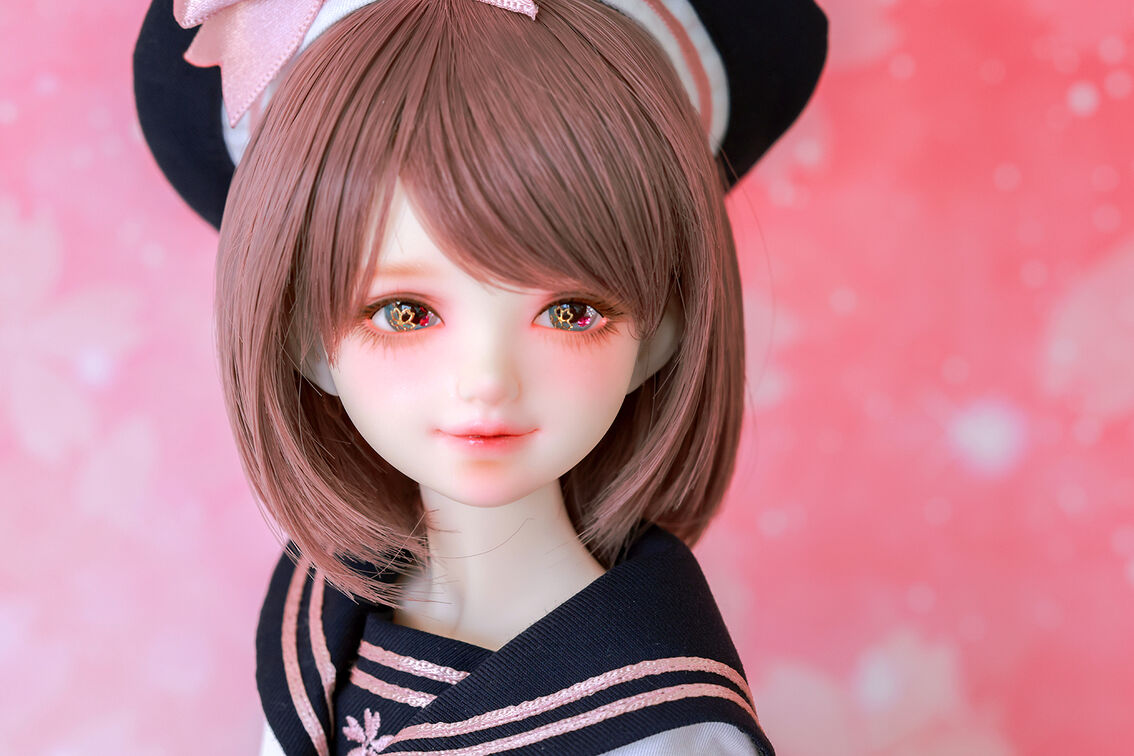 櫻シリーズにはなくてはならない、SWAN DOLLが手掛ける、桜の花咲くジュエリーアイ。今回のDingDangのためだけにオーダーされたこのアイは、桜貝のようなほんのり色づくピンクから水色に移り変わる、グラデーションカラーの虹彩を採用。覗き込むたびに美しい桜並木の情景を想わせる、奥行のある美しさを持っています。