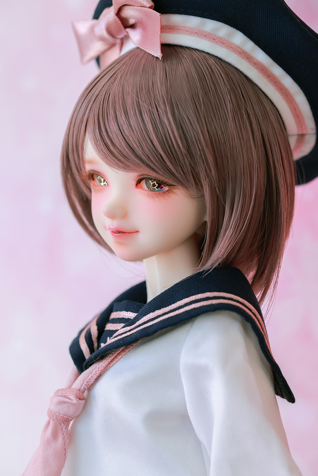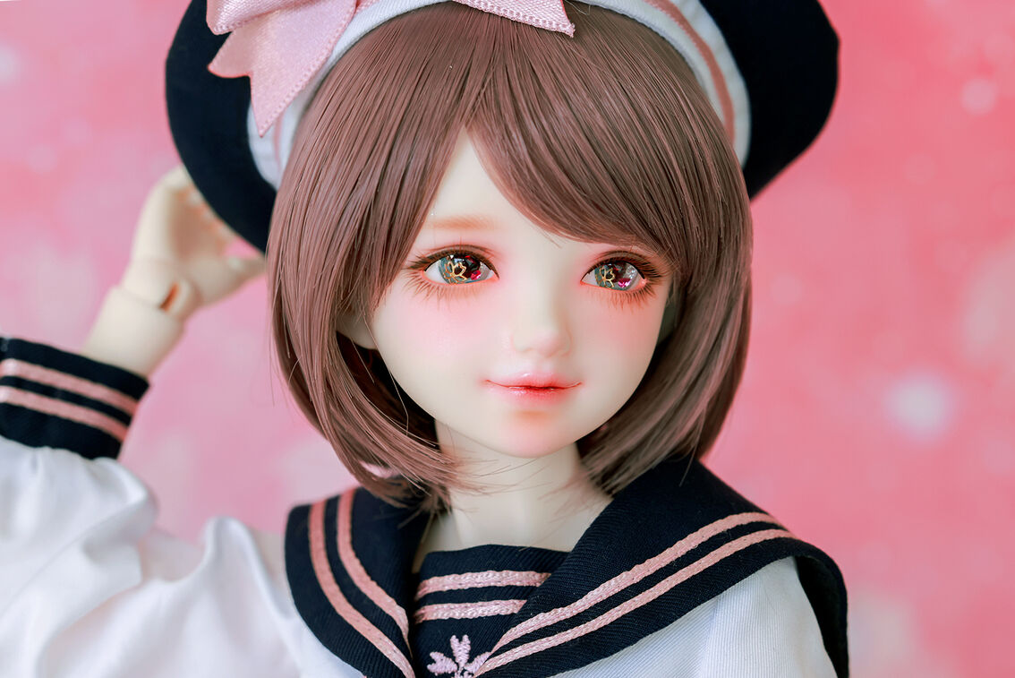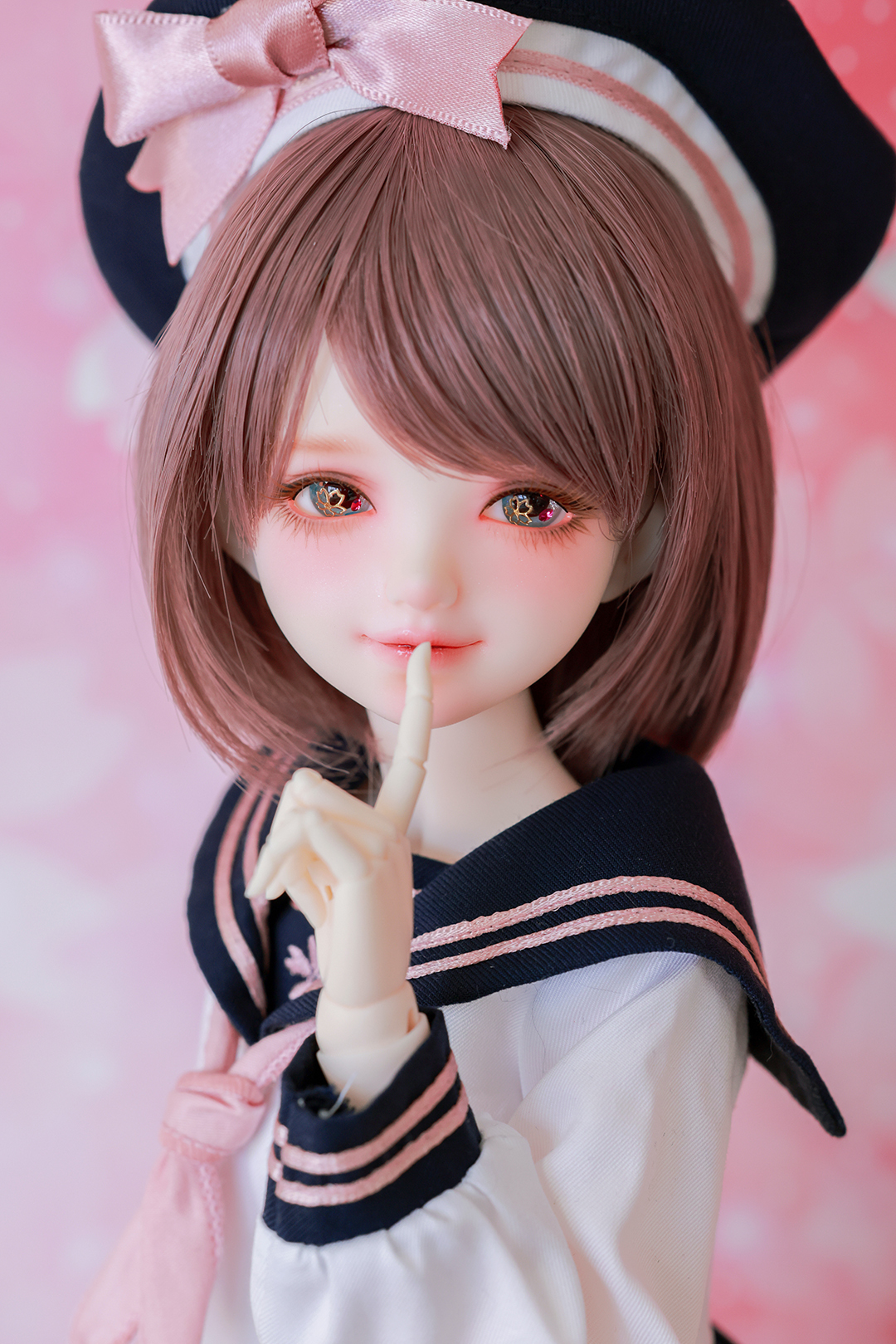 櫻シリーズにはなくてはならない、SWAN DOLLが手掛ける、桜の花咲くジュエリーアイ。今回のDingDangのためだけにオーダーされたこのアイは、桜貝のようなほんのり色づくピンクから水色に移り変わる、グラデーションカラーの虹彩を採用。覗き込むたびに美しい桜並木の情景を想わせる、奥行のある美しさを持っています。