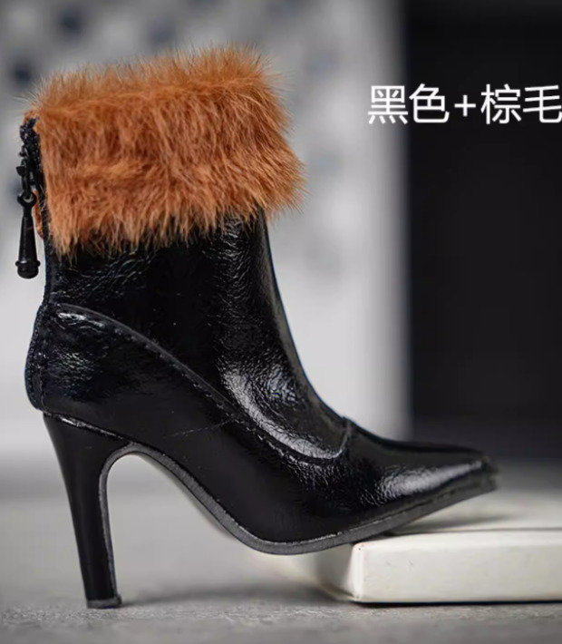 ファーピンヒールブーツ:ブラックxブラウン(60cm,SDGR対応)
