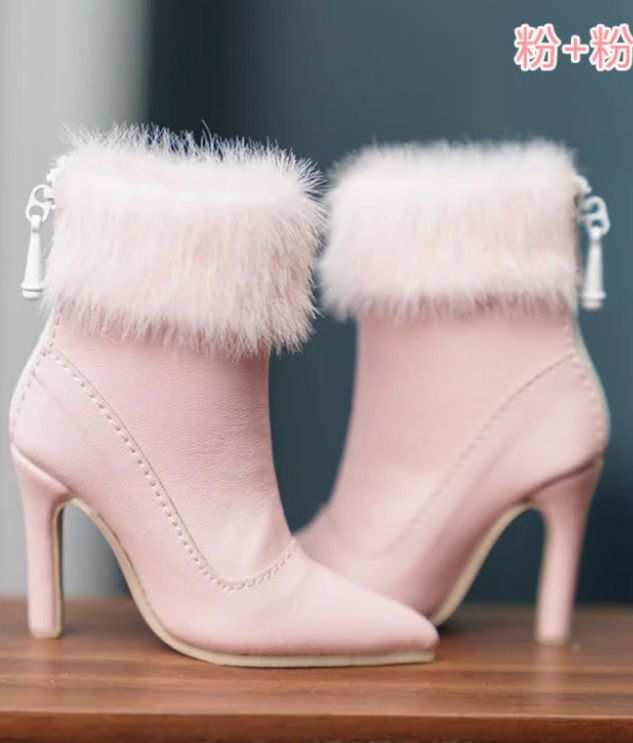 • ファーピンヒールブーツ:ブラックxブラウン(60cm,SDGR対応)
