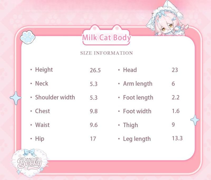 Milk Cat (奶猫体) 26.5 23 5.3 5.3 9.8 9.6 17 6 --- 13.3 9 2.2 1.6 9~10 22