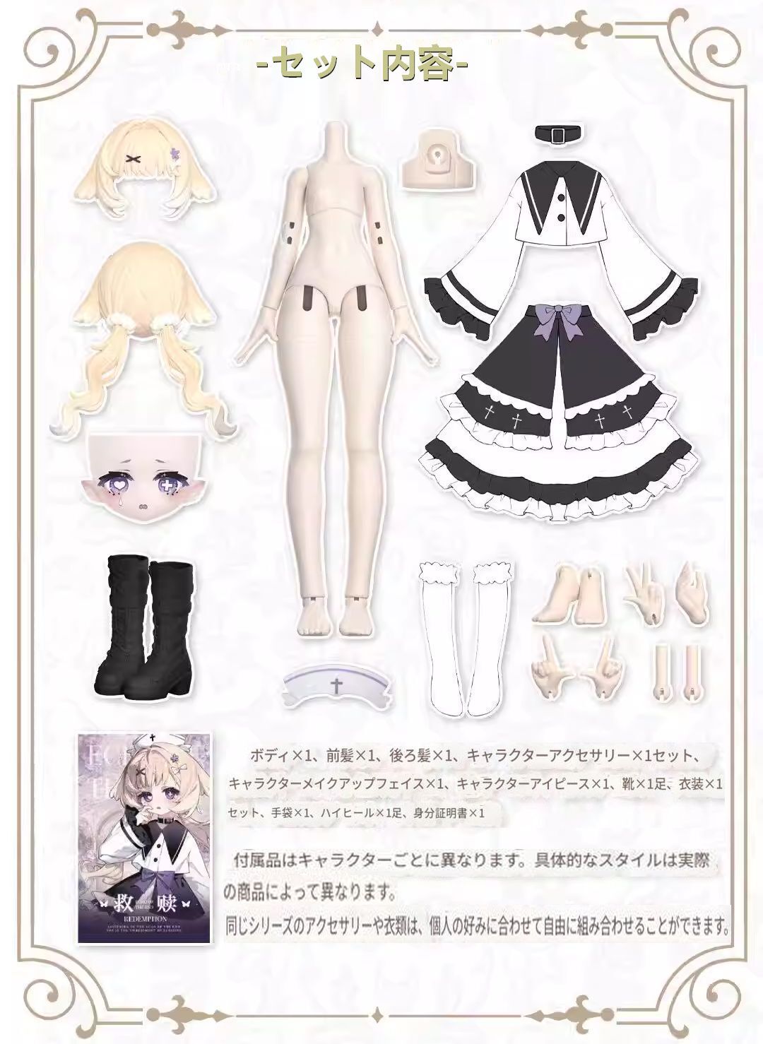 通常タイプ6種・シークレット1種のうち、いずれかのドールが1体入っています。